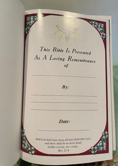 BRAND NEW HOLY BIBLE DOVE OF PEACE REMEMBRANCE KING JAMES VERSION Leather Bound Inside front cover page dedicated to place a name inscription , if desired. First several pages are in color with Comfort , consolation and hope scriptures Bible has gold tone trimmed pages Free shipping... Please email me any questions you may have before you purchase. International bidders , please check the shipping calcu lator for a shipping quote and buyer is responsible for any custom, tariffs or duty charges. Returns gladly accepted within 30 days of date of purchase if item is returned in same new condition as described . Please notify seller. Purchase price will be refunded once item is returned and inspected. A 15% fee applies for returns. I strive to provide you with the best customer service and top quality products. Please let me know if you have any questions or concerns before leaving feedback. I want to make your Ebay experience a great one! Thanks for Looking!