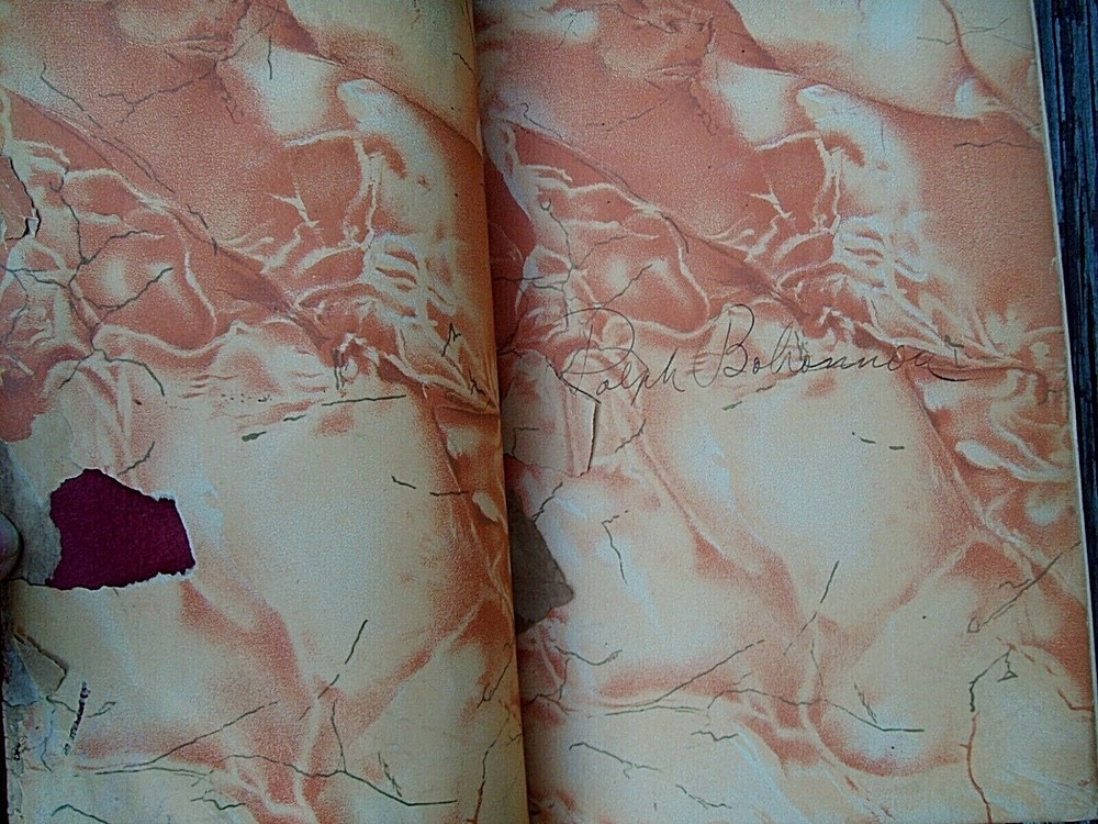 Book has soft worn leather with gold and printed paper attached. Edges are very worn from use. Book has script name. See piece of paper away from leather. Inside pages are crisp, clean and tight. The book is not dated but seems to be early printing in the USA. Please write with questions or information