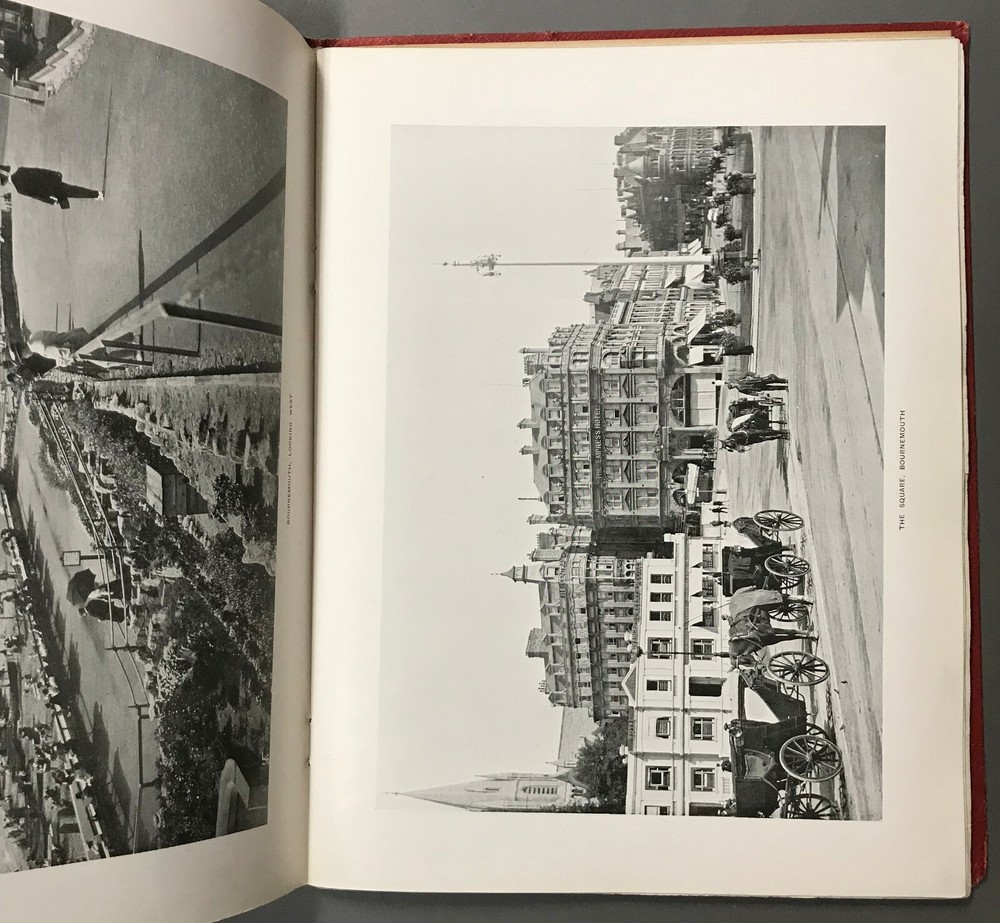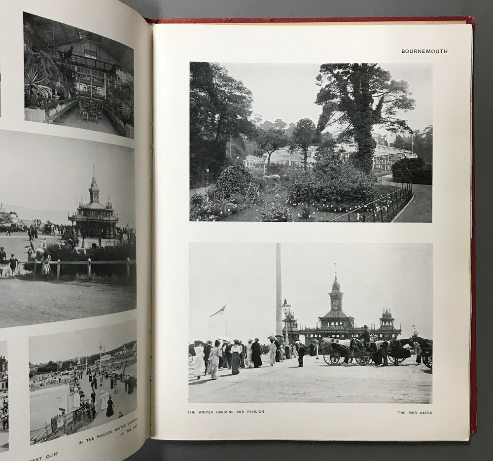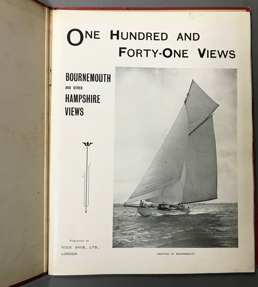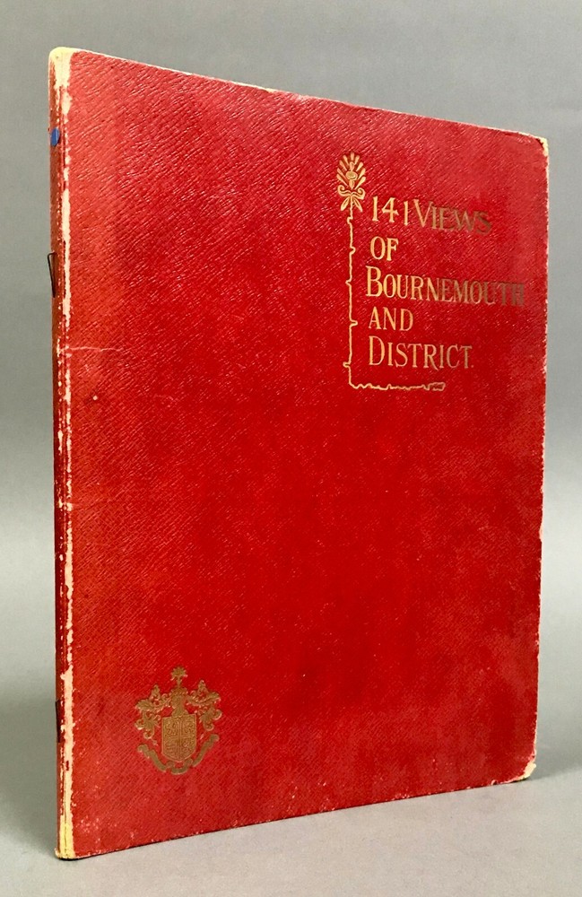 [Hampshire, England] 141 Views: Bournemouth (Rock’s Series) Rock Bros. c.1910 One Hundred and Forty-One Views: Bournemouth and Other Hampshire Views (Rock’s Series.) London: Rock Bros., no date, circa 1910. Quarto. Unpaginated. Red Leather, stamped in gilt, staple bound. Rubbed and edgeworn, scattered toning, occasional edge tears, binding shaken, with a few pages loose. Still, very good. BB-00025A