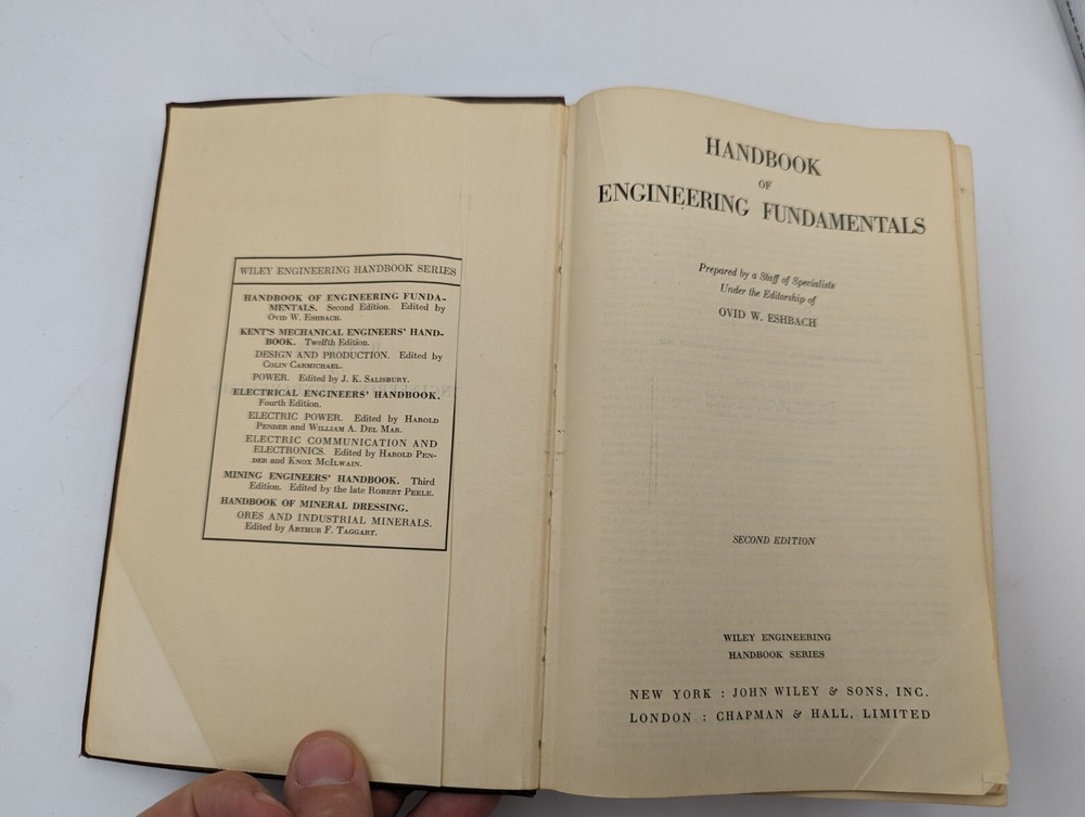 Handbook of Engineering Fundamentals Eshbach College Second Edition Second Printing1952