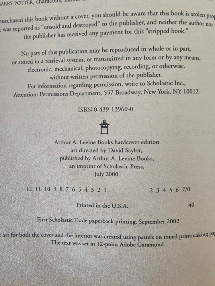 Harry Potter And The Goblet Of Fire First Scholastic Paperback Printing Sep 2002.