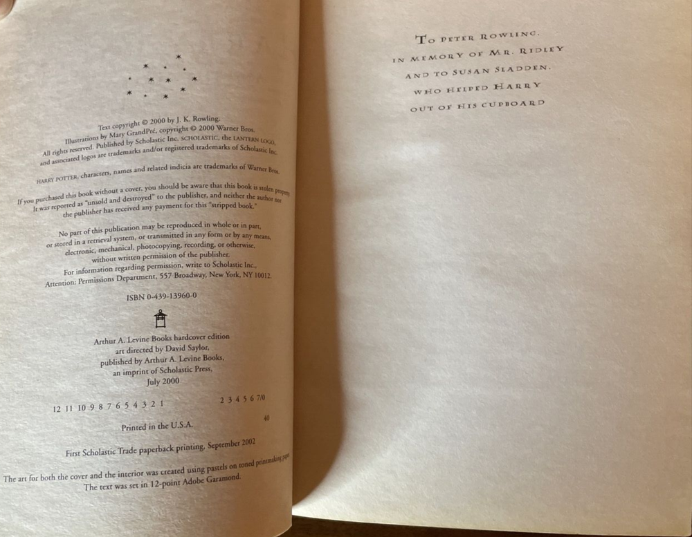Harry Potter And The Goblet Of Fire by J.K Rowling Paperback 1st Scholastic Ed. Good pre-owned condition. No writing on pages. Cover and binding good. Please view pictures.