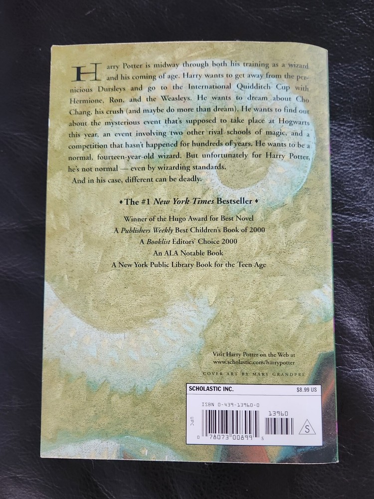 Immerse yourself in the magical world of Harry Potter with this captivating fourth installment of the series, "Harry Potter And The Goblet Of Fire." Written by the brilliant J.K. Rowling, this thrilling novel will take you on an unforgettable journey filled with action, adventure, and sorcery. Published by Scholastic in 2000, this paperback softcover book is perfect for young adults and readers aged 9-12 who enjoy fiction, particularly in the action and adventure genre. With special attributes like its easy-to-read format and Scholastic imprint, this novel is a must-have for any Harry Potter fan. You will receive the exact copy shown in the pictures, and we will ship with care. Thank you for viewing.