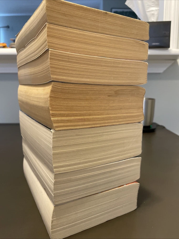 Lot of 7 books as pictured Used paperback (all) Set is in nice reading ready shape but overall condition is listed acceptable due to wear and use on some of the books Books may have spine bend, writing, yellow pages, cover tears, etc. (see acceptable condition definitions) See all photos **Books are not all from the same set Need more photos please ask before bidding or purchasing