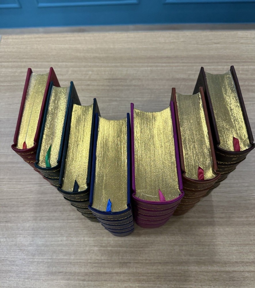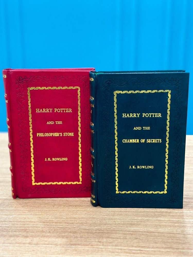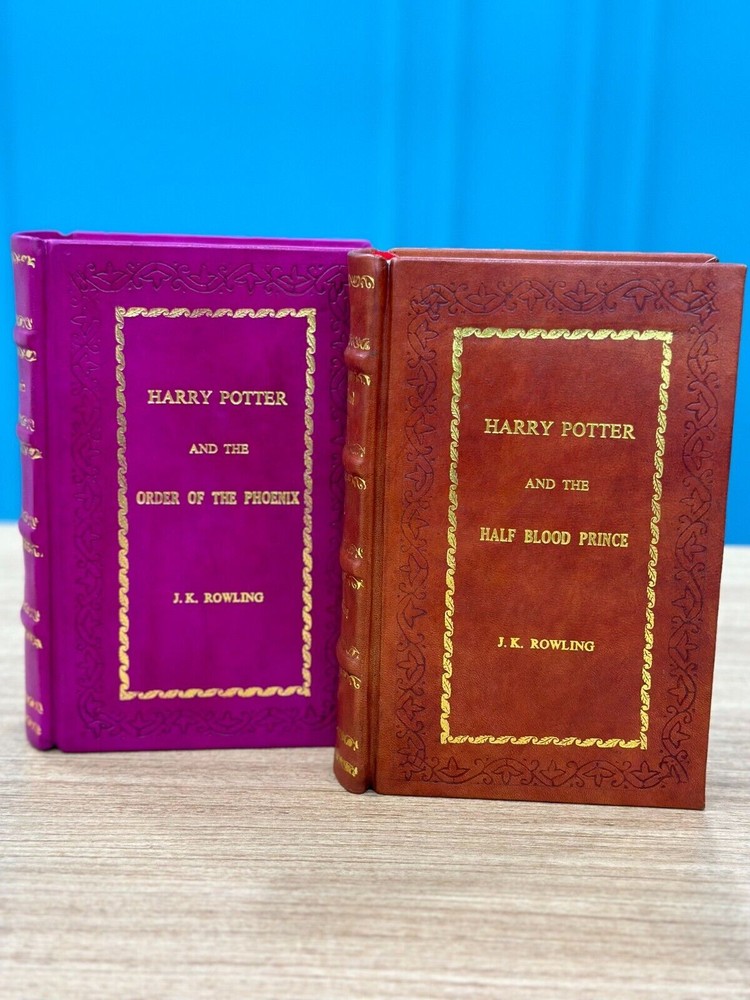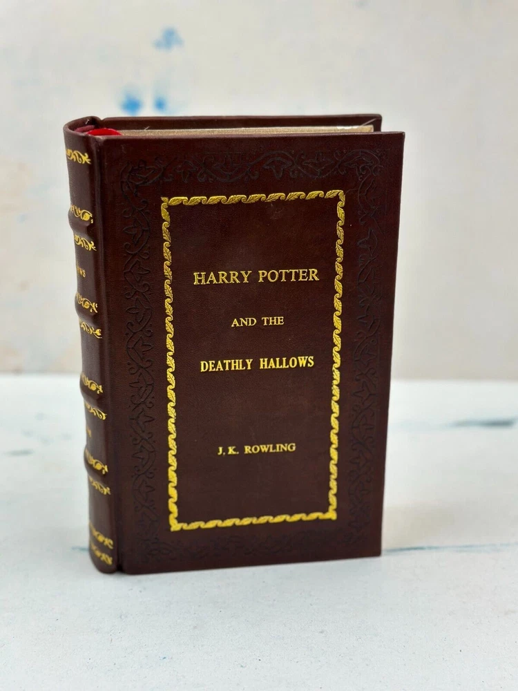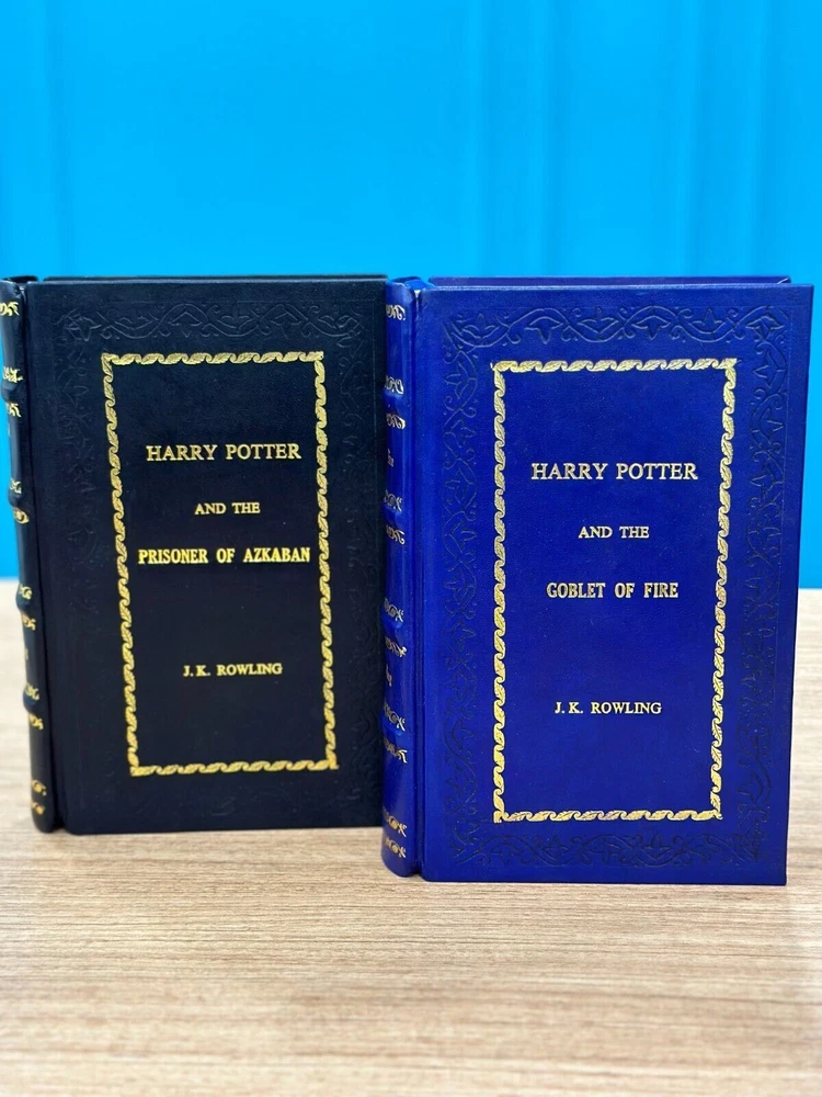 GYAN BOOKS INTRODUCING A REMARKABLE LEATHER-BOUND EDITION, METICULOUSLY CRAFTED BY THE ESTEEMED INSTITUTION " RARE BIBLIO " . A UNIQUE LEATHER-BOUND BOOK FOR ELITE READERS/COLLECTORS OF OLD RARE AND BESTSELLING BOOKS. For the Binding, we use AUTHENTIC LEATHER, graced with opulent GOLDEN LEAF DETAILING on the SPINE, FRONT COVER, AND BACK COVER, ADDED BY EDGE GILDING. ABOUT THE BOOK This title holds the distinction of being a Bestseller, highly praised by readers across the GLOBE. Elevate your gift-giving experience with this enchanting Collection of Harry Potter books, the perfect Christmas surprise for your Loved Ones. Immerse them in the magical world of Hogwarts with the complete series of seven original titles: "Harry Potter and the Sorcerer's Stone," "Harry Potter and the Chamber of Secrets," "Harry Potter and the Prisoner of Azkaban," "Harry Potter and the Goblet of Fire," "Harry Potter and the Order of the Phoenix," "Harry Potter and the Half-Blood Prince," and "Harry Potter and the Deathly Hallows." Crafted with meticulous attention to detail, each book in this set features a genuine leather cover that corresponds to the true color depicted in the storyline. The elegance continues with gold leaf gilding along the edges, marbled endpapers, and individualized placeholder ribbons, making these editions truly magical. For an extra touch of personalization, consider adding a custom-designed box to securely house these treasures for an additional cost of USD 25. Our commitment to quality extends to the delivery process—we guarantee the safe arrival of your book set within 10-14 days. Every order is shipped via Priority Service ensuring that your magical gift reaches its destination in perfect condition. Unveil the wonder of Harry Potter with this exceptional collection, a gift that will be cherished for years to come. LEATHER COLOUR OPTION: - We offer a diverse range of LEATHER COLORS, including RED, GREEN, BLUE, BLACK, MAGENTA, YELLOW, TAN. We also offer multi-color labels with these beautiful books on special request. SELECT YOUR PREFERRED LEATHER COLOR AT NO ADDITIONAL COST. Simply provide the image code in the remarks field when placing your order. Points to note before placing order: We urge you to appreciate that our Leather-Bound Books are Genuine works of art and are Handcrafted by our Professional Craftsmen. Thus, requiring time and care to reach the pinnacle of excellence. We Prepare the Book after receiving the Order. We usually take 30 business days as handling time to dispatch shipment.