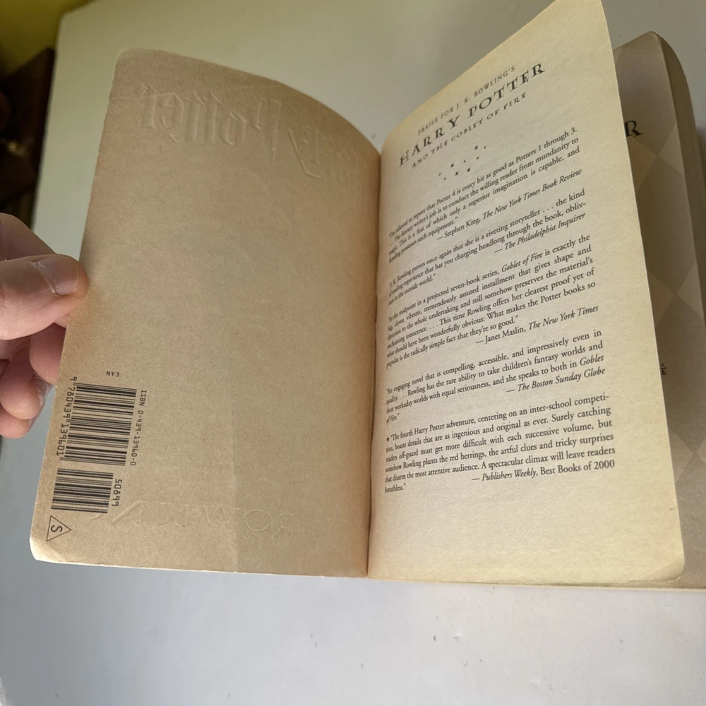 Get ready to enter the magical world of Harry Potter with this exciting book series by J.K. Rowling. Follow the adventures of a young wizard named Harry as he discovers his true identity and attends a school for wizards. This paperback book, titled "Harry Potter and the Goblet of Fire," is the first in the series and features 752 pages of action, mystery, and adventure. With a publication year of 2002, this book is a classic addition to any young reader's collection.
