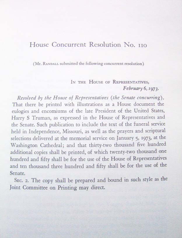 | Book Title | Harry S. Truman Memorial Tributes |