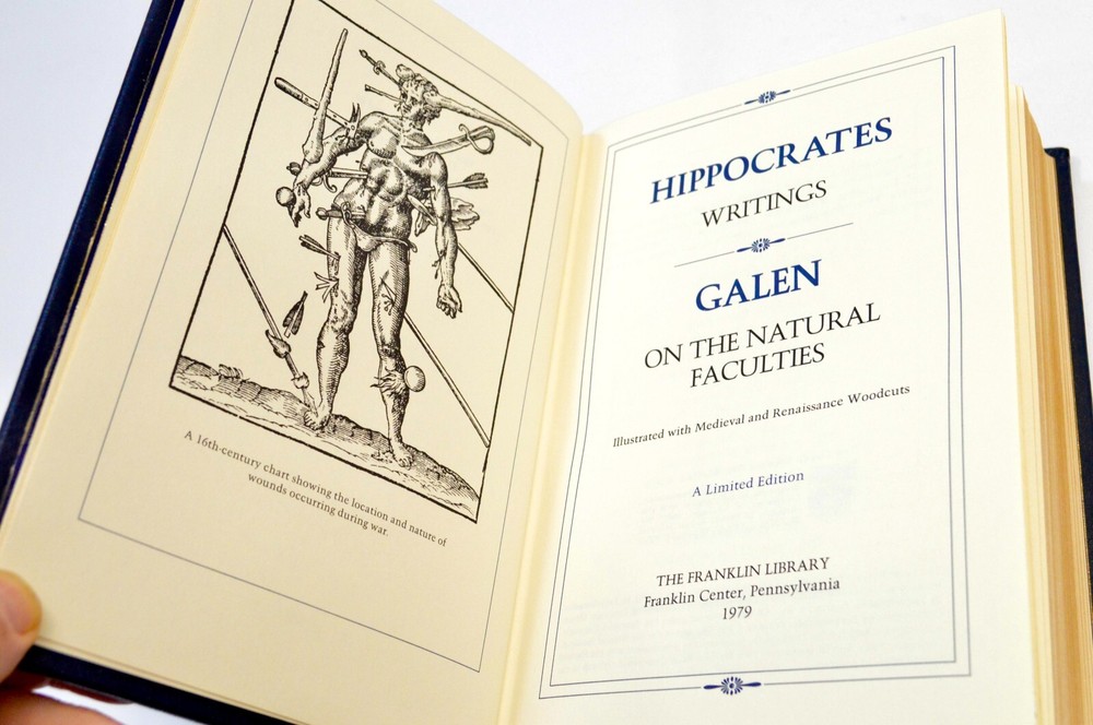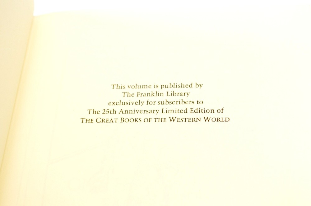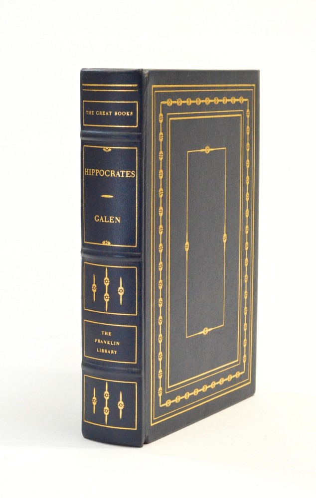 Hippocrates and Galen. From the Limited Edition Great Book series. Published 1979. In excellent condition; seemingly unread, tight spine, leather fine, no marks to gilt, very slight warp to front board unnoticeable on the shelf (see photos.) Franklin Library was a premiere bindery of leather books from the 1970's to 2000, renowned for their fine craftsmanship . There were numerous styles produced - the most desirable being these Full Leather bindings. (Lesser books were made of imitation leather and spine only (quarterbound) in leather.) These are the real deal - full leather binding with beautiful attention to detail. Each book is bound in a signature color, and exhibits 22 karat gold foil stamping of the titles and jacket designs. They are printed on archival quality acid-neutral paper and include silk moire endpapers, an expensive hubbed spine, bound-in silk ribbons bookmarks, gilded page edges, Smyth-sewn pages for strength and durability and often contain beautiful illustrations. ___________________________ We take pride in offering items of extraordinary quality, value and condition. We offer the finest in modern leather bound books and more. Books are sourced exclusively from pet and smoke free homes, and are carefully inspected. Other items are equally carefully sourced ... check out our other listings and see! Shipping is the responsibility of the buyer unless otherwise noted or agreed. Books are wrapped and protected in bubble wrapping for shipping, with additional cushioning paper filler in an appropriately sized carton. Most books will be shipped via USPS Media Mail or FedEx Home Delivery. International Shipping through ebay's Global Shipping Program only. All descriptions are to the best of our knowledge. Sales are made As Is and no warranty is offered as to authenticity or provenance. T itle passes to buyer upon shipment. All sales are final. Arizona sales tax applies. Returns are not accepted except in rare circumstances upon agreement. We also buy books and are always open to purchasing excellent condition books from Easton Press, Franklin Library, Folio Society and similar as well as other collectible books. See our website www.modernleatherbooks.com and let us know what you have. Thank you for considering our listing!