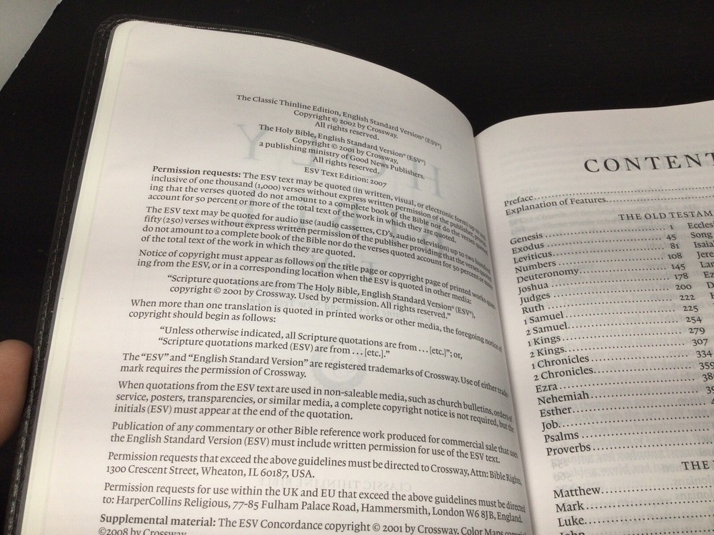 Holy Bible EVS by Crossway Classic Thinline Edition Trutone Series Leather 2002. Great Bible with silver edged pages shipped quickly.