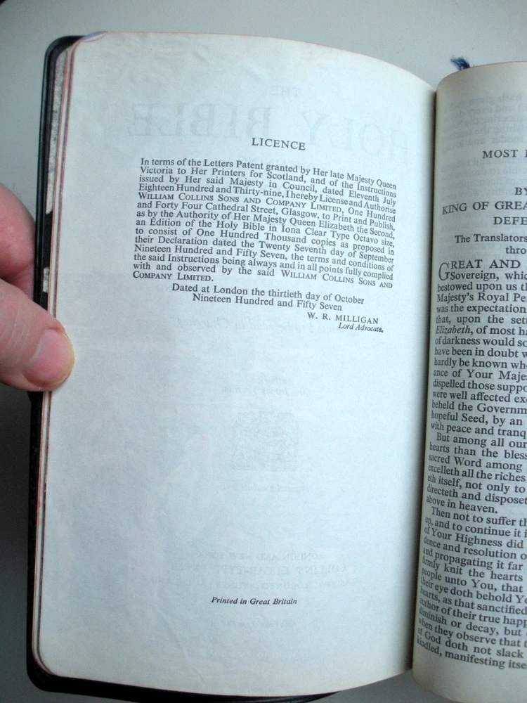 Holy Bible KJV by HIS MAJESTY'S SPECIAL COMMAND 1957 Vintage Faux Leather JESUS Holy Bible KJV by HIS MAJESTY'S SPECIAL COMMAND 1957 Vintage Faux Leather JESUS FORMAT: Flexible faux leather By His Majesty's Command Appointed to be read in Churches. Collins' Clear Type Press, and Color photographs of the Holy Land, Time charts of Bible history, and maps. CONDITION: This book has been read and remains in used GOOD condition overall. The cover has wear of the corners and edges. The binding is strong but the end papers have some damage and are beginning to separate from the cover due to age. The pages are generally clean with writing on the presentation page. Please see photos. PAYMENT & SHIPPING TERMS: Please pay within 3 days of item purchase. We ship promptly upon receipt of payment. eBay is now collecting state sales tax where appropriate. Our "Free Shipping" offer includes USPS Media Mail shipping in the USA. This rate typically delivers in 5-9 days but can take as long as 30 days to some areas. If you need your purchase right away, we strongly suggest you choose the Priority Mail option at checkout. International Buyers Please Note: * Import duties, taxes and charges are not included in the item price shipping charges. These charges are the buyer's responsibility. * Please check with your country's customs office to determine what these additional costs will be prior to bidding/buying. * We do not mark merchandise values below value or mark items as "gifts" - US and International government regulations prohibit such behavior. Listing and template services provided by inkFrog