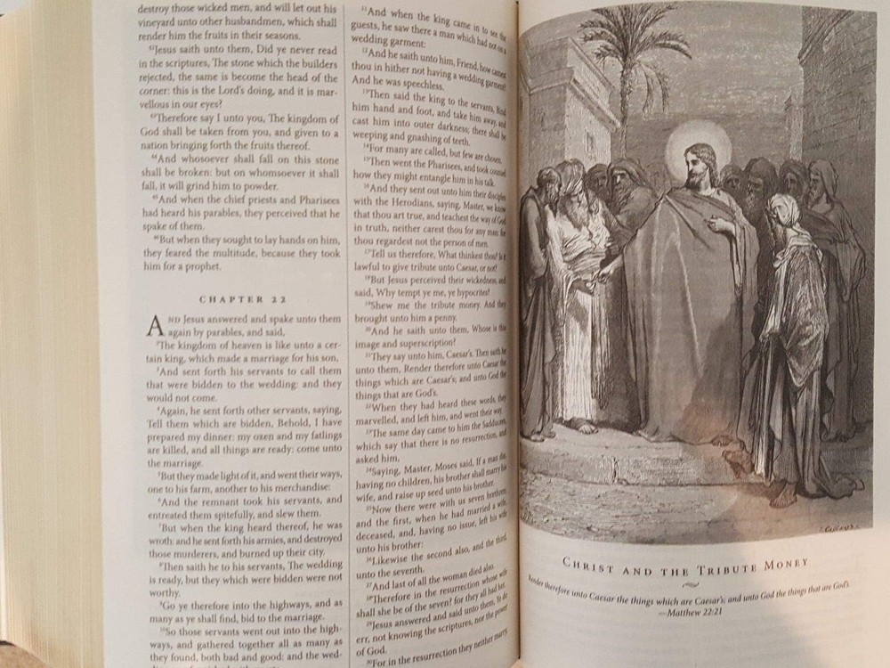 This stunning leather-bound King James Bible is a true treasure! The rich, timeless language pairs perfectly with Gustave Doré’s breathtaking illustrations, making every page feel like a work of art. The craftsmanship is exceptional—soft leather, gilded edges, and a ribbon marker add elegance. Whether for personal devotion, study, or as a cherished heirloom gift, this edition delivers both beauty and durability. It’s more than a book; it’s a piece of history you’ll want to pass down for generations. Absolutely love it!
