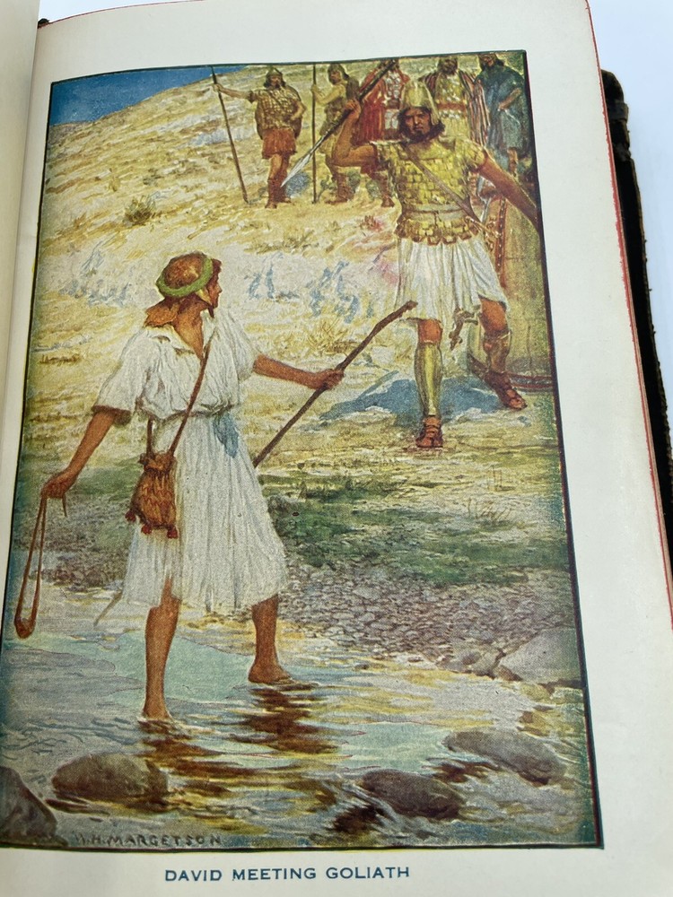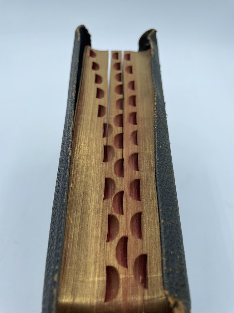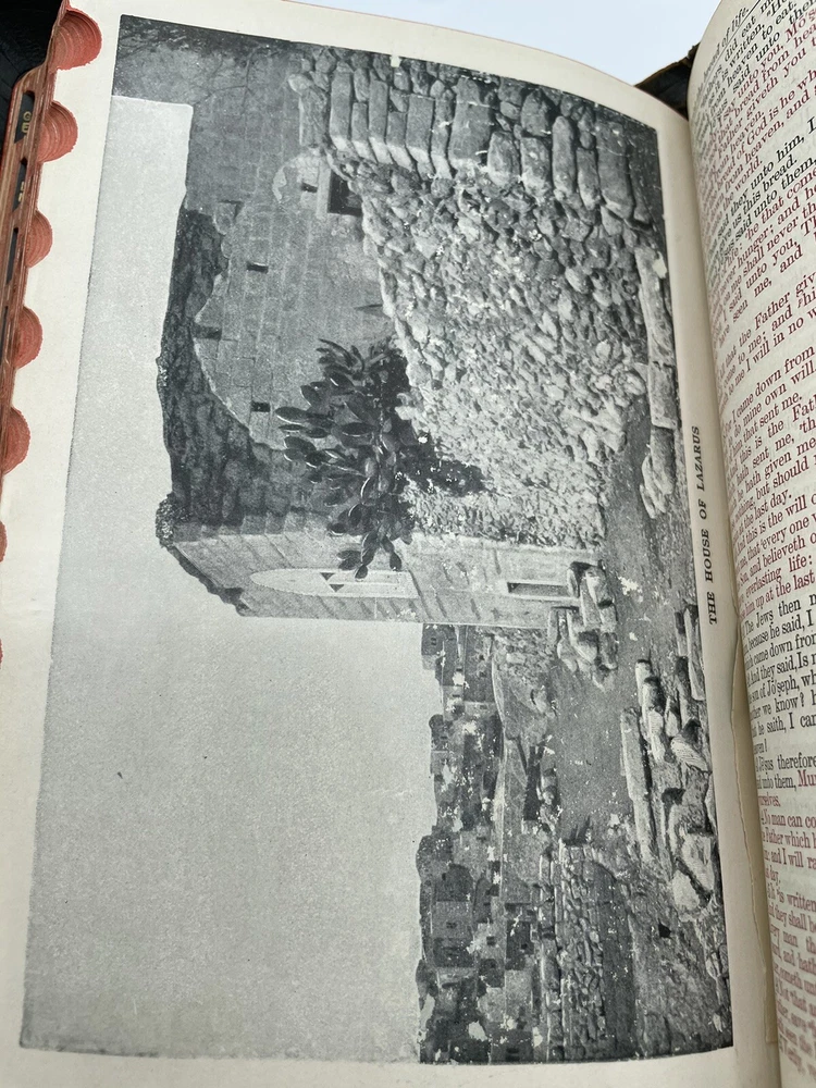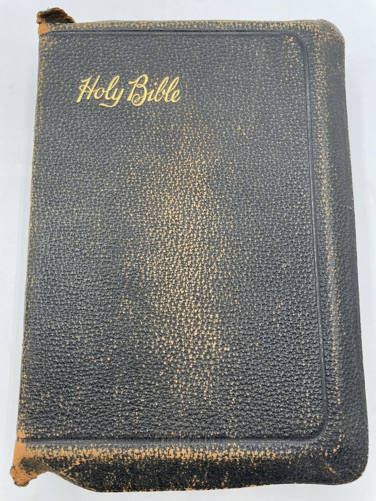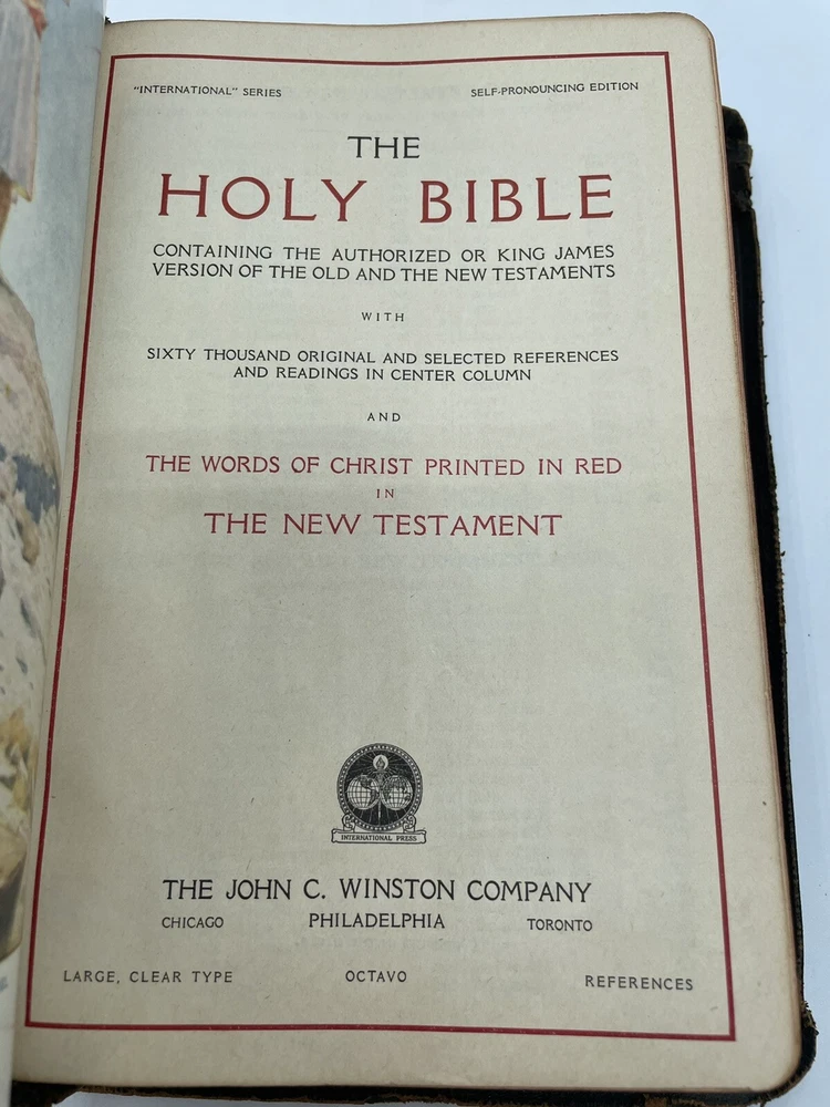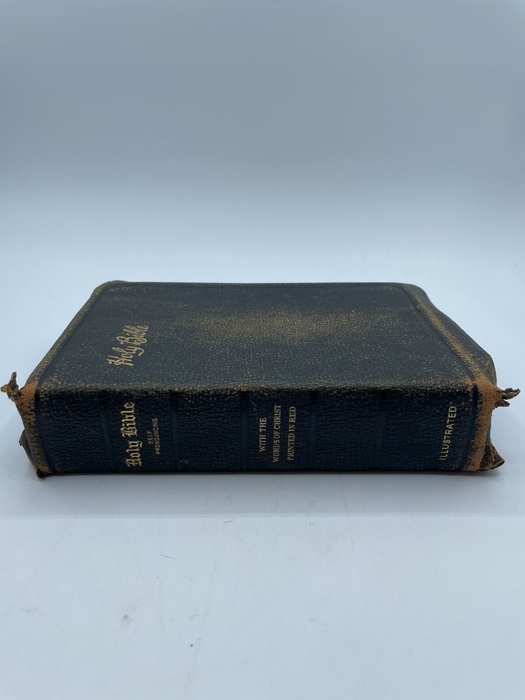 Holy Bible Self Pronouncing With the Words of Christ Printed in Red vintage. There is wear and tear of the cover. There is some light discoloration of the pages. Clean copy. Please see pictures. Shipped promptly with care. Shipped with USPS Media Mail.