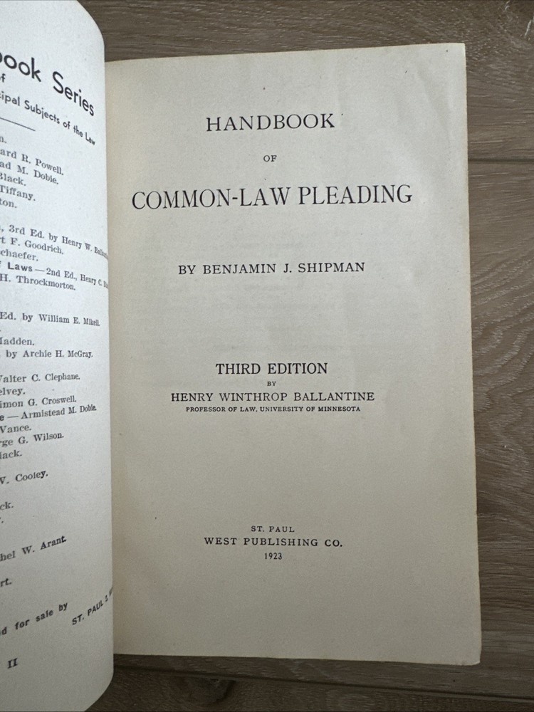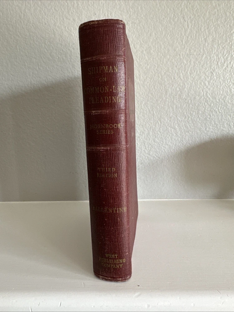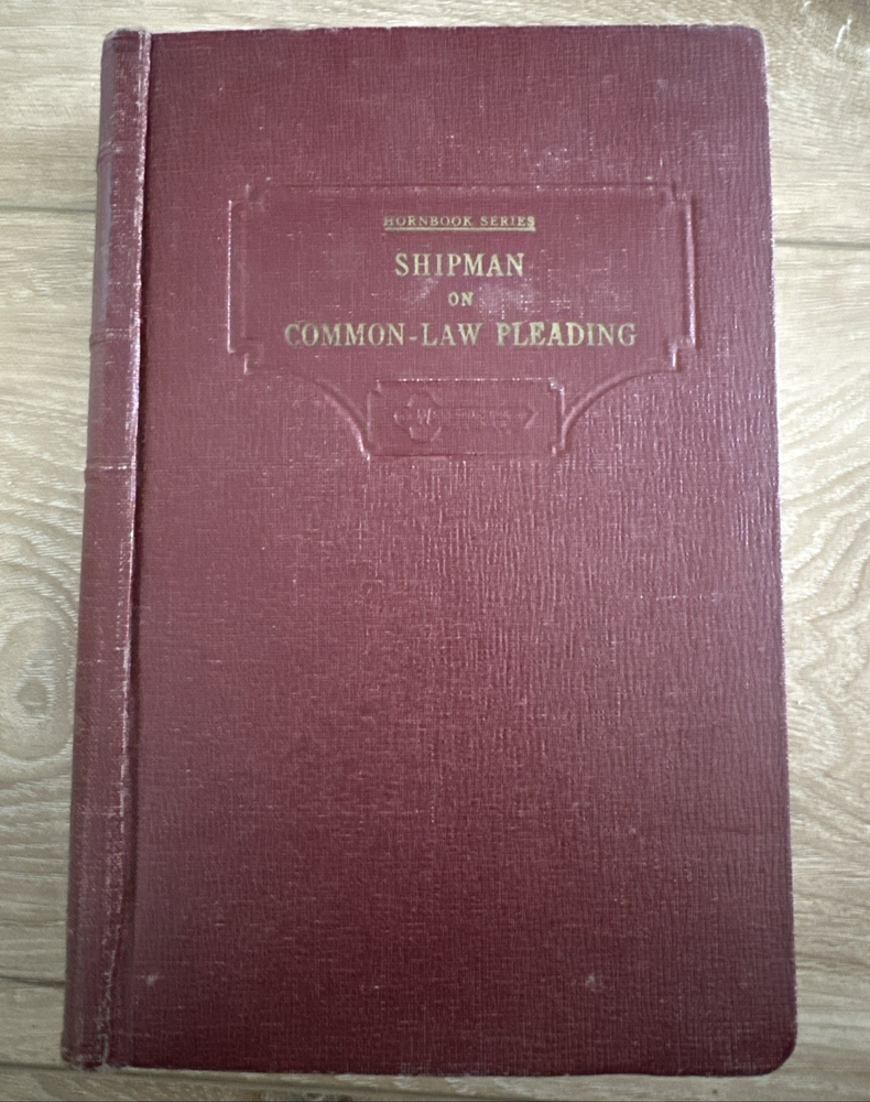 Hornbook Series Shipman On Common-Law Pleading 3rd Edition (1923) Has some writing (scribbling inside). Also, has discoloration and wear. See pictures....