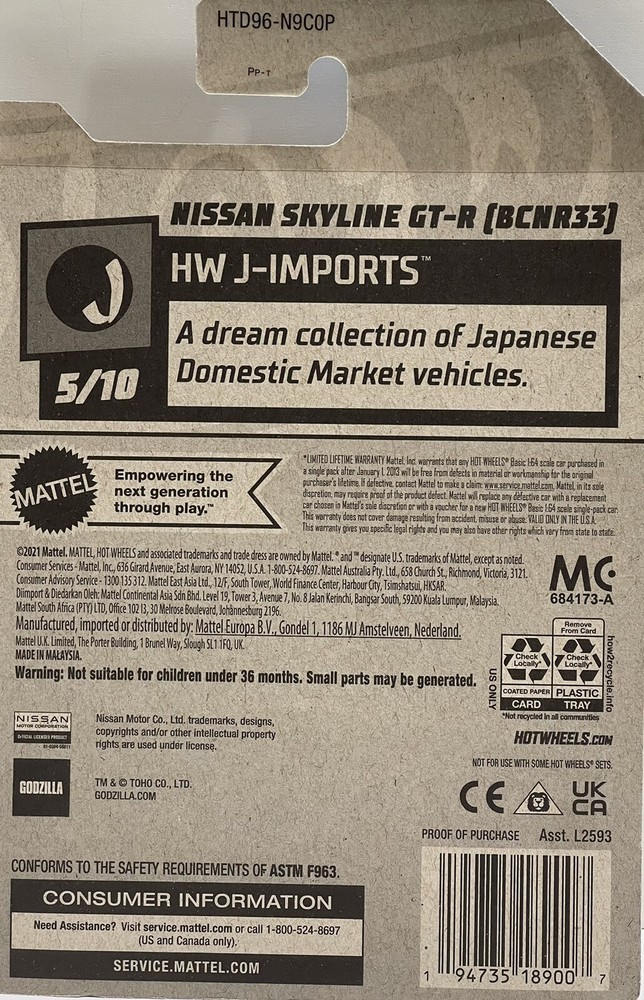 Hot Wheels 2024 N Case International Card Nissan Skyline GT-R (BCNR33) Godzilla. Condition is New. Shipped with USPS Ground Advantage....