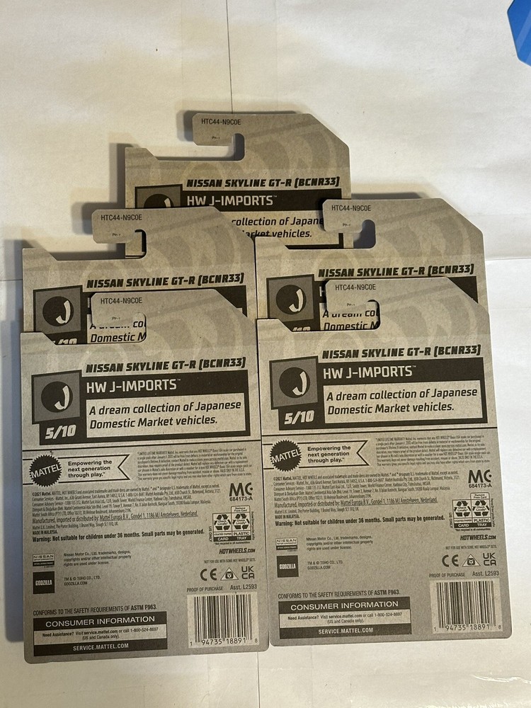 This lot of 5 Hot Wheels diecast cars features the Nissan Skyline GT-R (BCNR33) model from the Hot Wheels J-Imports series. The 1:64 scale cars are painted in white and are based on the iconic Japanese sports car from 1990, known as "Godzilla". The cars are brand new and come in an unopened box, making them a great addition to any Hot Wheels collection. These limited edition advertising specimens were manufactured in Malaysia in 2024 and are part of the Hot Wheels Japanese Domestic Market character family. The cars are highly detailed and have no visible defects or damage. Add these rare Hot Wheels Nissan Skyline GT-R (BCNR33) diecast cars to your collection today! I pack well and ship quickly after payment. Check my feedback and buy with confidence. Thanks for looking and happy collecting!