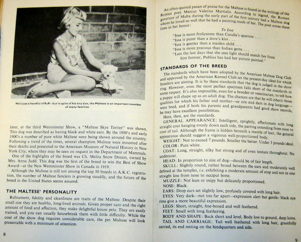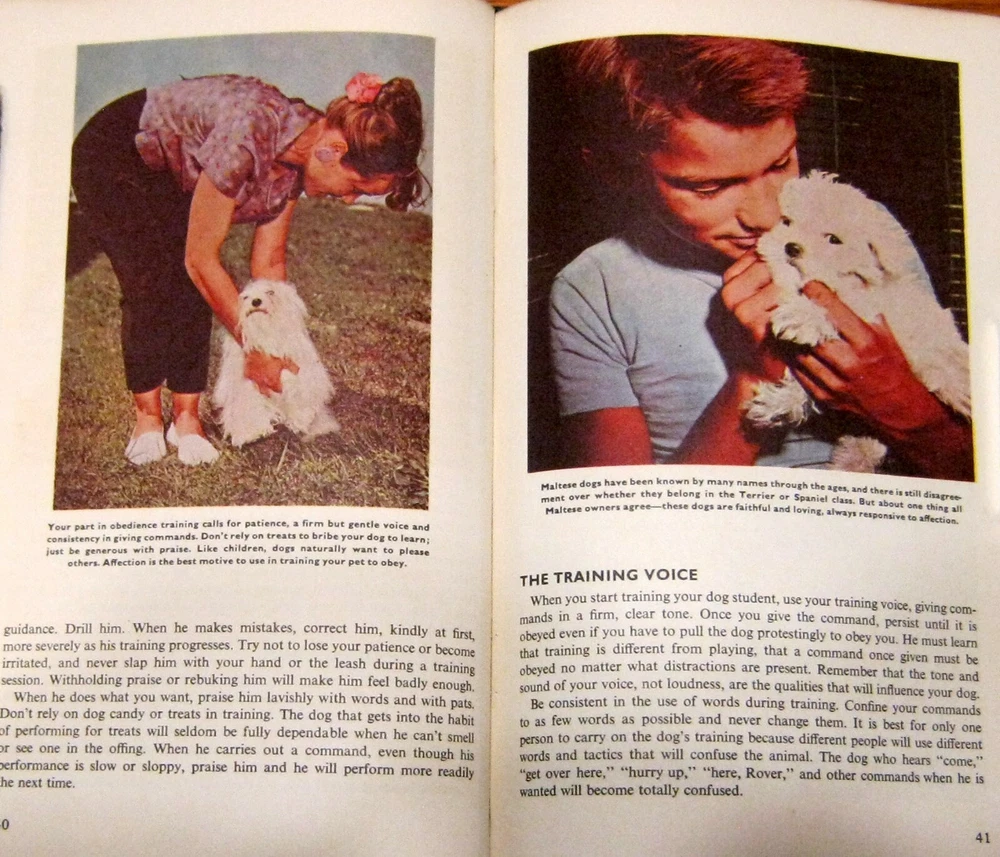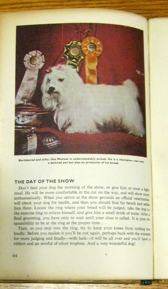 This is a Vintage 1962 Leather bound illustrated book of how to raise and train a Maltese dog. Book measures 5 1/2" X 8 3/4" and has 64 pages. Book is in Good+ condition. Please see scans. S&H will be $5.00 in the U.S. only. Good luck.