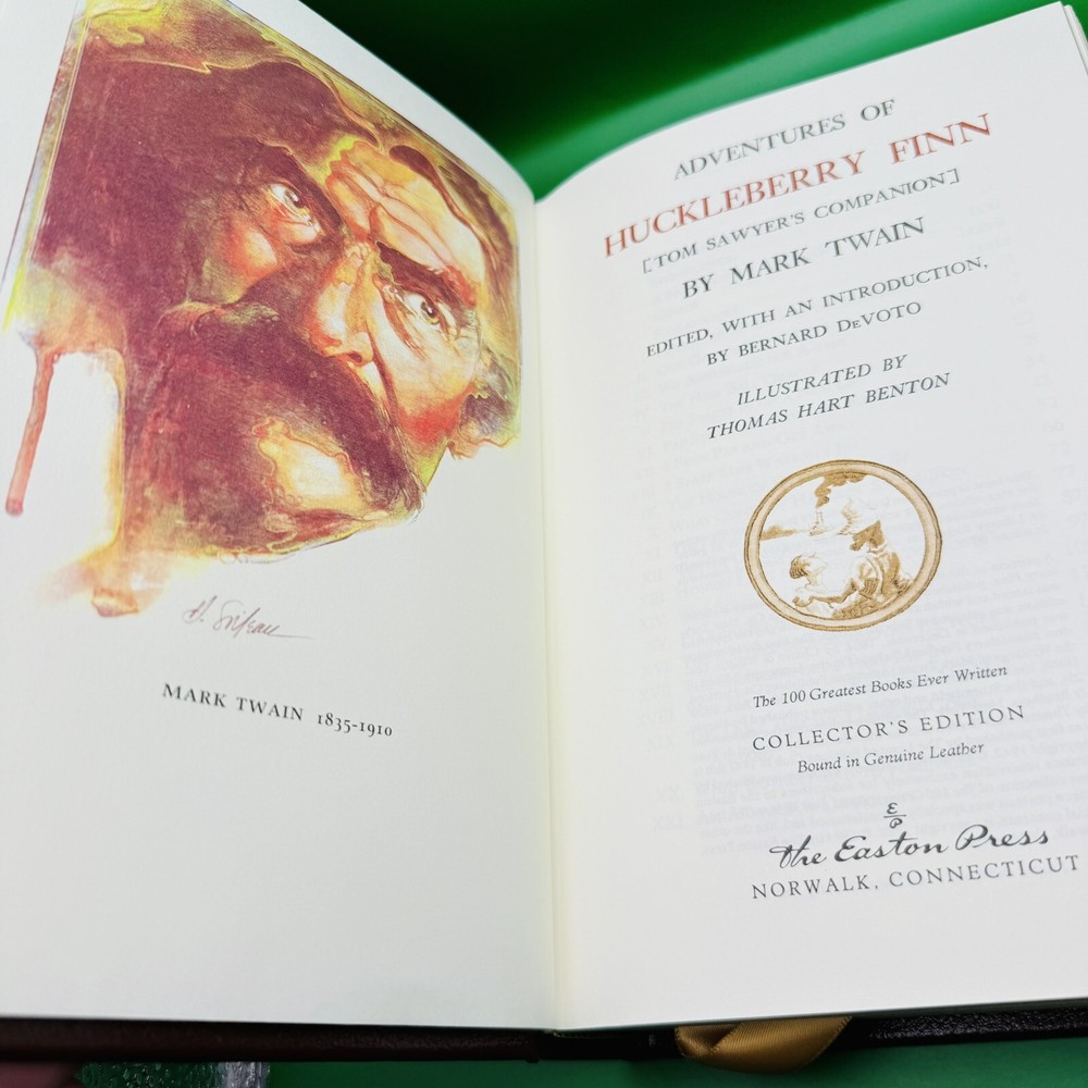 This is a rare and highly sought-after edition of Mark Twain's classic novel, Huckleberry Finn. The book features a beautiful leather cover with gilded pages and is part of the Easton Press Collector's Edition series. It's a must-have for any literature and fiction enthusiast and would make a great addition to any collection. The book's topic revolves around action and adventure, making it even more exciting to read. The author, Mark Twain, is known for his witty writing style and ability to transport readers to a different time and place. This edition was published in 1994 and is in excellent condition.