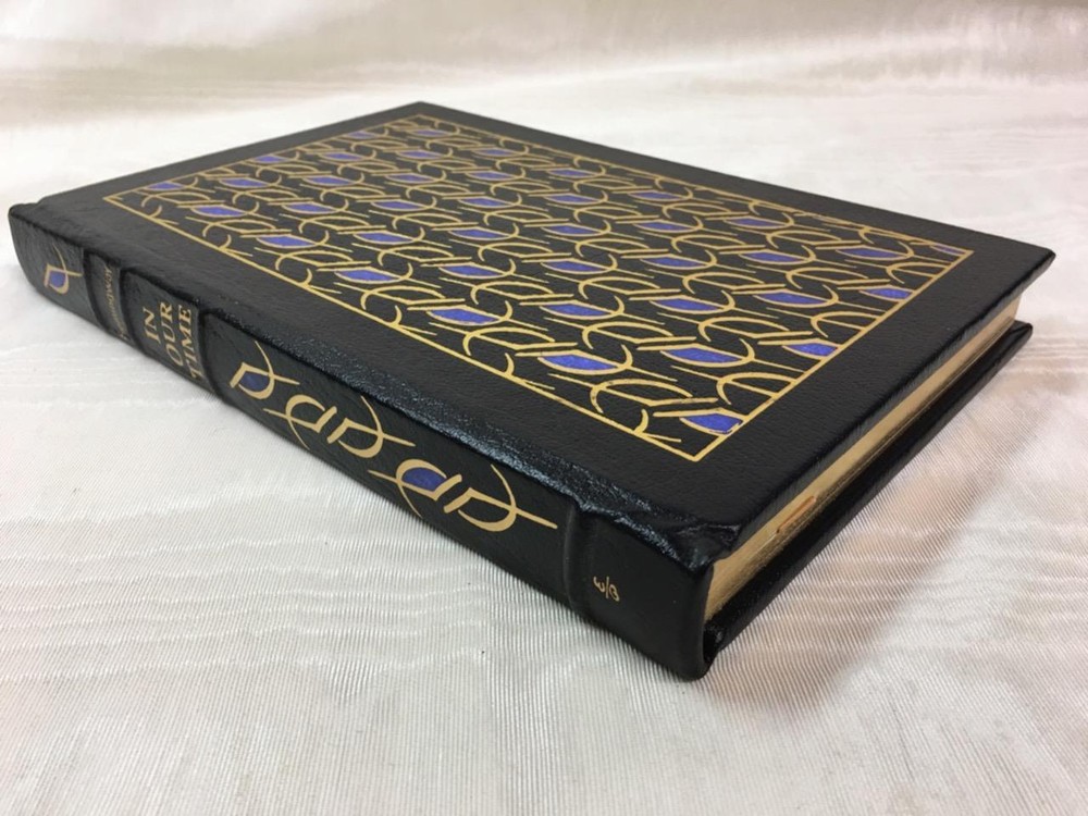 IN OUR TIME, Ernest Hemingway, The Easton Press Leather HC Book w/ bookplate IN OUR TIME, Ernest Hemingway, The Easton Press Leather HC Book w/ bookplate Click images to enlarge Description In Our Time by Ernest Hemingway From "The Leather Bound Library of The Complete Works of Ernest Hemingway" series published by The Easton Press, 1990. Bound in genuine leather, 157 pages, gilt titles and decorations, all gilt edges, raised bands on spine, silk moire end papers, satin ribbon page marker. Illustrated. Please see photos. CONDITION: Like new with an unused Easton Press bookplate from the Hemingway series. COMMENTS: This will be securely packed for a safe ride to your home. SEE OTHER EASTON PRESS BOOKS IN OUR AUCTIONS. To see our current auctions Visit our store: Read Hear Now ************************************* Like books and music? Visit our store: Read Hear Now Images sell! Get Supersized Images & Free Image Hosting Create your brand with Auctiva's Customizable Templates. Attention Sellers - Get Templates Image Hosting, Scheduling at Auctiva.com. Track Page Views With Auctiva's Counter
