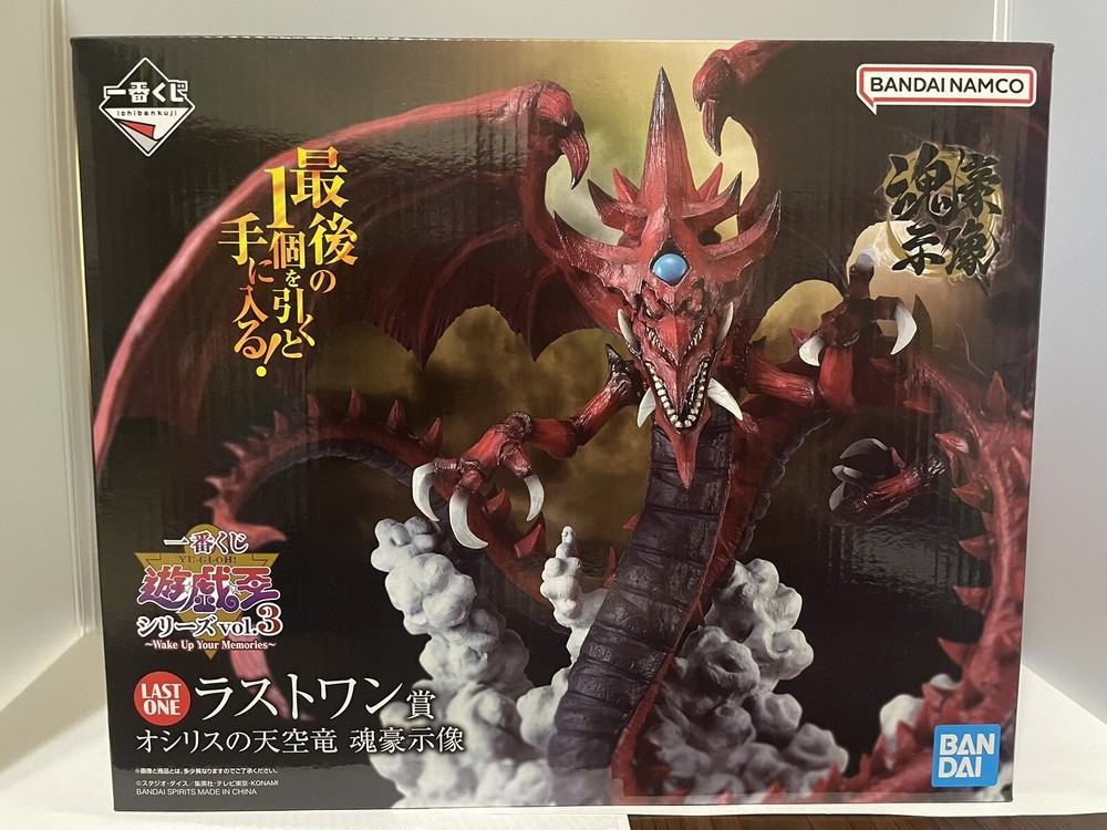 This is a rare Ichiban kuji Slifer the Sky Dragon Figure from the Yu Gi Oh Vol.3 Japan Last One prize. The figure is highly sought after by collectors and fans of the franchise. The brand of the figure is Bandai and it is made in Japan. This collectible is a must-have for any Yu Gi Oh fan and would make a great addition to any collection. It falls under the categories of Collectibles, Animation Art & Merchandise, Animation Merchandise, and Other Animation Merchandise. Don't miss out on the chance to own this prized figure.