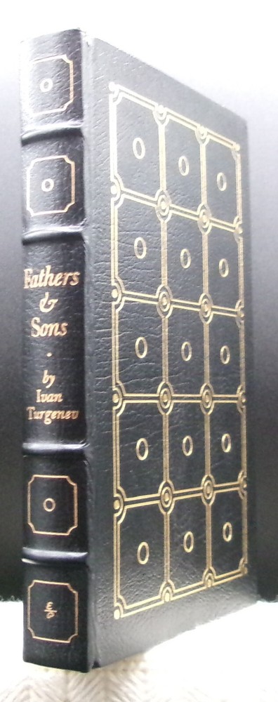 FATHERS AND SONS by Ivan Turgenev. Introduction by John T. Winterich. Translated from Russian to English by Constance Garnett. Norwalk, Connecticut: The Easton Press, (1977). Collector's Edition, The 100 Greatest Books Ever Written Series. Frontispiece portrait art by Fritz Eichenberg specially commissioned for this Easton Press Collector's edition. Illustrated throughout on striking black-and-white plates from wood-cuts by Fritz Eichenberg. Easton Press bookplate, with former owner's name typed-in, attached to the verso of the blank page facing the half-title page, else fine, crisp, very tight and unread in rich-black leather with patterned gilt embossed decorations to the front and rear covers, gilt embossed decorations and titles to the raised four-band hubbed spine, black-and-yellow headband and tail-band, all page edges bright gilt, taupe satin-moire end-papers, and a sewn-in silk ribbon marker. 9.5" by 6.4"; 235 pages; plus introduction, and publisher's preface. PLEASE VIEW OUR STORE FOR MORE GREAT ILLUSTRATED BOOKS THANKS! Created by eBay Seller's Assistant Basic.