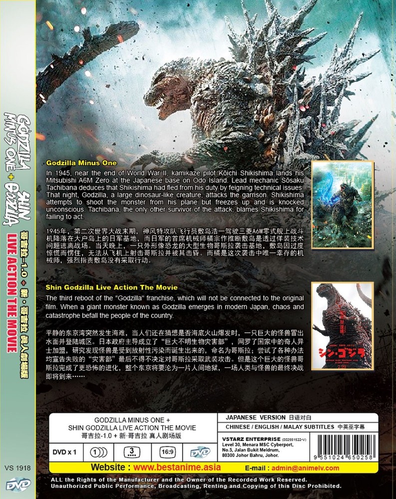 GODZILLA MINUS ONE + SHIN GODZILLA THE MOVIE Japanese Live Action Movie 1: Godzilla Minus One Movie 2: Shin Godzilla EXTRA 5 % WHEN YOU BUY 3 ITEMS ABOVE Language : Japanese Subtitle : Chinese / English Number Of Episode : 2 Movie Number Of Disc : 1 Format : Region All' Condition : NEW, Original Malaysia & Licensed Item Payment * We Accept PAYPAL Payment Only Shipping & Handing * Free Register Track Your Shipment 10 to 21 Days Without Sat & Sun Working Days. * Item Will Be Shipped ONLY After Clearing Of Payment. All Order Will Process 2 Working Days ( NOT ICLUDED WEEKED OR PUBLIC HOLIDAY ) * After Received The Payment. We Only Ship To Confirm Address On " EBAY INVOICE ORDER DETAIL ". * All Items Will Be Bubble Wrapped For Better Protection. Return Policy * 30 Days Returnable. * Buyer Need Pay The Return Postage. * Items Must Be Returned In Perfect Original Condition, Buyer Responsible For Returns Shipping Cost. * Refunds Will Be Arranged Thru PAYPAL. Contact US * If You Have Any Questions Or Requests, Please Feel Free To Contact Us. We Will Do Our Best To Reply To You As Soon Possible. Thank You.