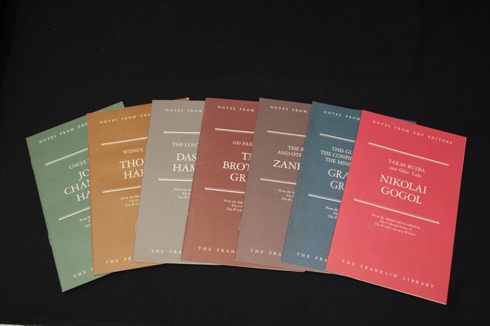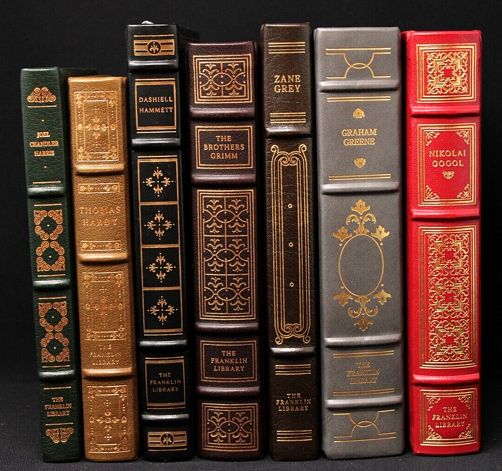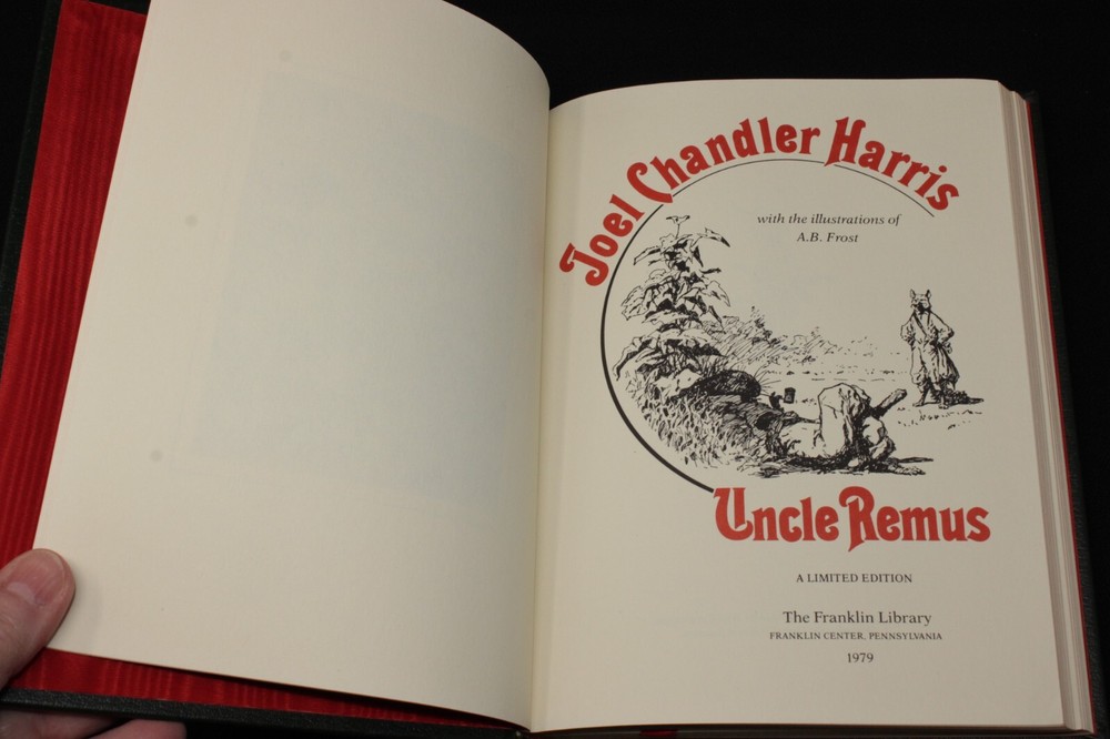 JOEL CHANDLER HARRIS Uncle Remus, illustrated by A.B. Frost . From THE FRANKLIN LIBRARY Limited Edition Series "Collected Stories of the World's Greatest Writers." Includes its "Notes from the Editors" booklet. ©1979, 172 pages, full leatherbound with gilt embossed boards and all-edge gilding, ribbon page marker, and silk moire endpapers. Near Fine condition, with a few light spots on the top-edge gilding (pic #3.) Binding is tight, pages are pristine & clean, no bookplate or personalization. (Please excuse the slant in pic #4, my table wasn't quite level!) Please review all photos, as they are part of this description. (This is the actual book you will receive - I do not utilize stock photos.) A handsome addition to your library, and quite giftable too! Check my listings, I have many more Franklin Library books available, and I'm happy to combine shipping. The Fine Print… Check my feedback rating, and buy with confidence! Please contact me if you have any questions or concerns before bidding. Most of my items come from Estate Sales, are previously owned, and are in good vintage condition unless otherwise noted. Please expect incidental evidence of age and use, such as light scratches, dust, toning and fingerprints. Vintage linens are sold As Found – they have not been laundered. I do call out any noticeable stains, flaws or damage on all my items, so please read the descriptions closely and review all photos. Payment is expected at time of auction close or purchase . Your order will be Cancelled after 5 days if I do not hear from you, and the item will be relisted - you will also be blocked from bidding/purchasing from me in future. I am happy to work with you if unexpected circumstances arise – just let me know! Sales tax will be automatically added to your purchase by Ebay, for those states where it is required. I ship exclusively through the US Postal Service, and often I will upgrade you to Priority Mail at no additional cost. I also sell Internationally, those sales are shipped through Ebay (EIS .) Any customs and import charges are the responsibility of the buyer. Your purchase will be carefully packed – let me know immediately if it arrives in less than stated condition. If your item is damaged in transit, please send photos of the item(s) and box. If you are unhappy with your item for any reason, please reach out to me and I will do my best to resolve the issue for you. I will gladly combine shipping! If you purchase more than one item, please wait to pay until I send you an invoice, as the shipping cost is determined by the total weight of your purchases. Any significant shipping overcharges, will be refunded to you.