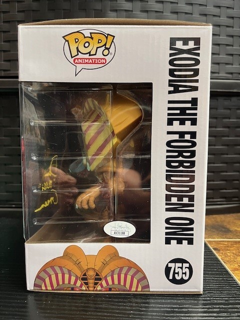 Unleash the power of the Trapped King with this JSA Authenticated Dan Green signature on the Yu-Gi-Oh! Exodia the Forbidden One #755 Vinyl Figure. Crafted with precision, this 6-inch Funko Pop! Vinyl encapsulates the essence of the iconic anime and manga character, standing tall with its protective cover to safeguard its pristine design. This collectible piece is a must-have for enthusiasts and fans of the Yu-Gi-Oh! franchise. Its unopened packaging ensures the figure remains immaculate, making it an ideal display item for your shelf or desk. With the authentication of James Spence, you can be confident in the legitimacy of this sought-after signature.