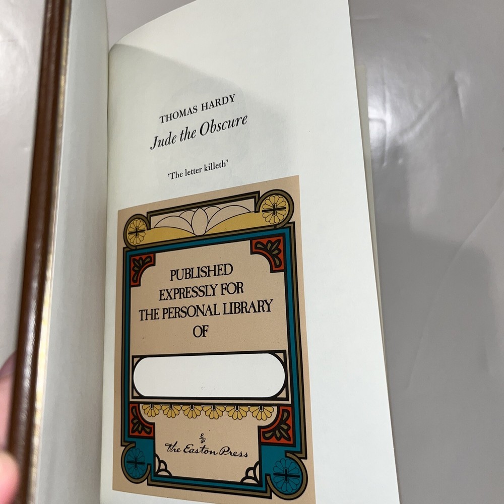 JUDE The Obscure Thomas Hardy Easton Press Leather Bound HC 1977. Used like new condition. No flaws to binding or gilding. Blank personal library tag included. Message for more details.