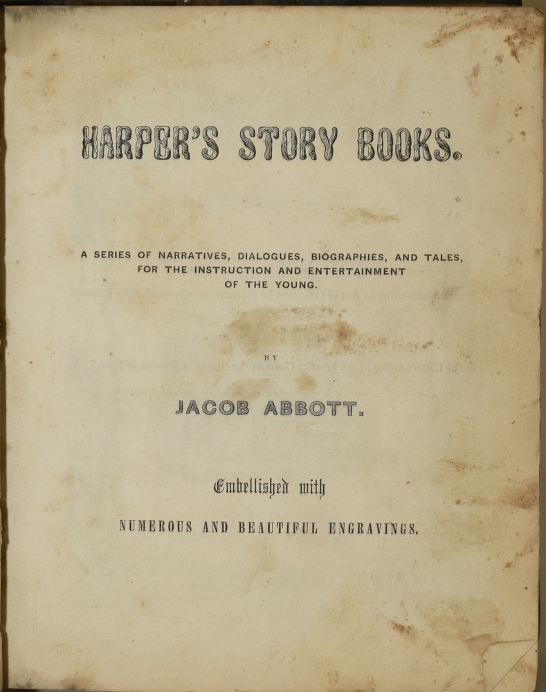 HARPER'S STORY BOOKS. [4 BOOKS BOUND TOGETHER] A SERIES OF NARRATIVES, DIALOGUES, BIOGRAPHIES, AND TALES ... EMBELLISHED WITH NUMEROUS AND BEAUTIFUL ENGRAVINGS Author: Jacob Abbott Title: HARPER'S STORY BOOKS. [4 BOOKS BOUND TOGETHER] A SERIES OF NARRATIVES, DIALOGUES, BIOGRAPHIES, AND TALES ... EMBELLISHED WITH NUMEROUS AND BEAUTIFUL ENGRAVINGS Publication: New York: Harper and Brothers, 1854; 1857 Description: Half Leather. In quarter morocco marbled boards, with raised bands and titling to the spine; the Volume number "2" is stamped on the spine. Consisting of four books bound together as one, each book containing 160 pages. Separately paginated with separate title pages. (1) Aunt Margaret; or How John True Kept His Resolutions; (2) Vernon; or, Conversations About Old Times in England; (3) Carl and Jocko; or The Adventures of the Little Italian Boy and his Monkey; and (4) Lapstone; or The Sailor Turned Shoemaker. Very Good binding. Seller ID: 280840 Black Swan Books Richmond VA We specialize in antiquarian books, classic literature, the Civil War, Viriginiana, travel, art, children's books, and other subject areas, including religion and philosophy . Terms Payment via PayPal is preferred. All orders ship within two [2] business days, Monday through Friday by standard mail, USPS Media Mail. Combined orders and expedited shipping is available. Please contact us for a shipping quote before ordering. All items are guaranteed as listed and described. Any item may be returned within 30 days for any reason in the condition is which they were sent. This listing was created by Bibliopolis.