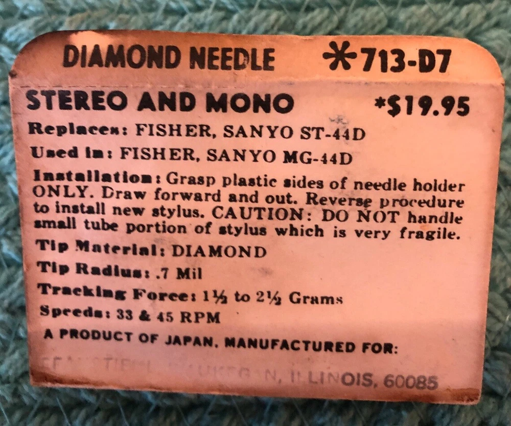 Japan NEEDLE STYLUS FISHER MC-4022T MT-6115 MT-6310 ST-44D MG MG44 713-D7. Pfanstiehl package. Shipped with USPS First Class Package....