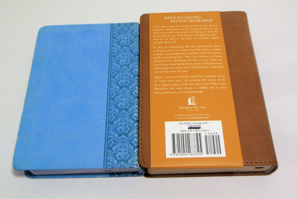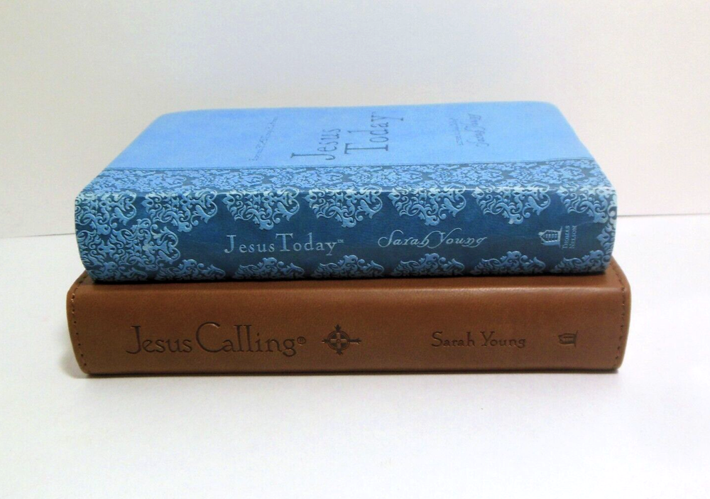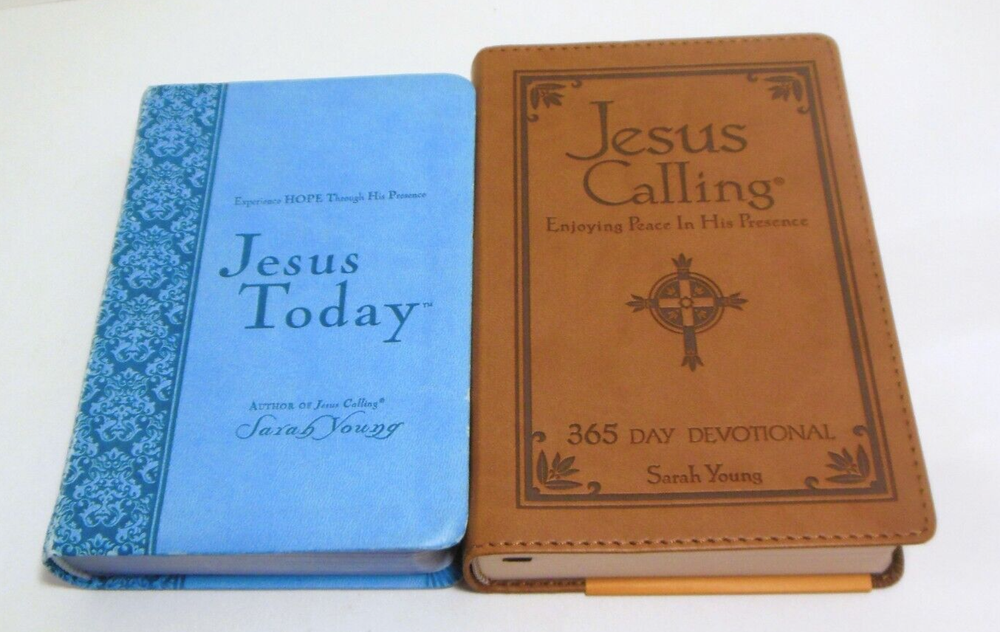 Photos Show the TWO Christian Devotional Books You Will Receive. Both are by Sarah Young and have Faux Leather Covers. 1) "Jesus Calling, Enjoying Peace In His Presence" A 365 Day Devotional. 2004. Condition: First two pages have a light vertical creasing, otherwise pages are crisp and clean. Still has original paper wrapper on back cover with price blacked out. 2) "Jesus Today, Experience Hope Through His Presence" Contains 150 Devotional Readings written as though Jesus Himself is speaking to you. 2012. Condition: Pages are crisp and clean. Cover has edge wear. ** FREE MEDIA MAIL SHIPPING WITHIN U.S. ** dsswDyih