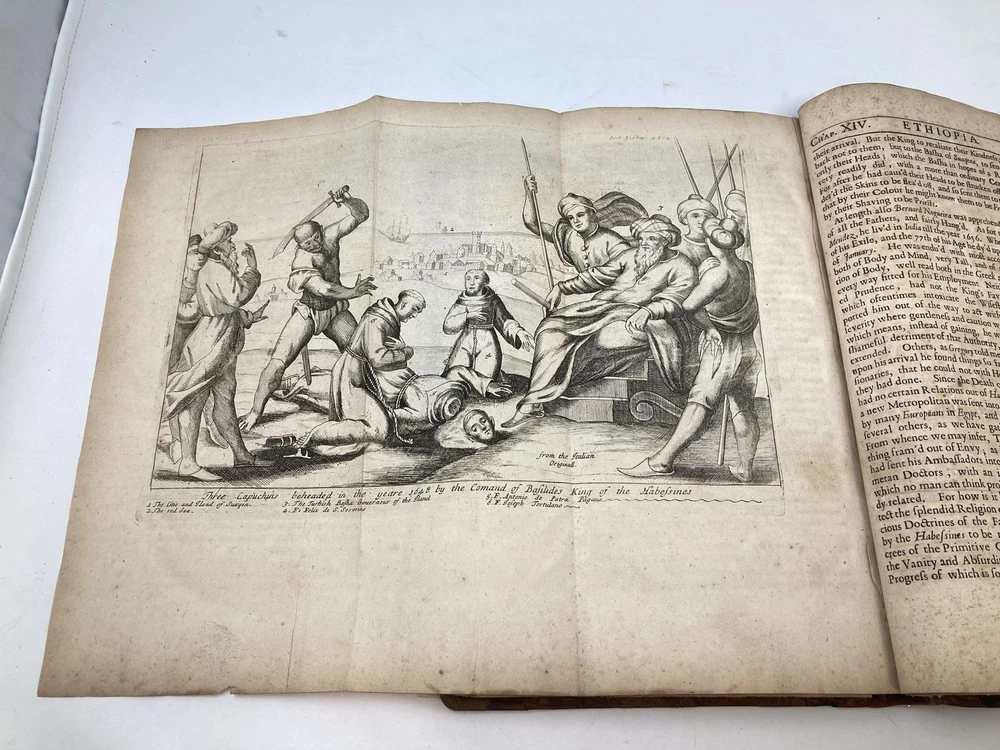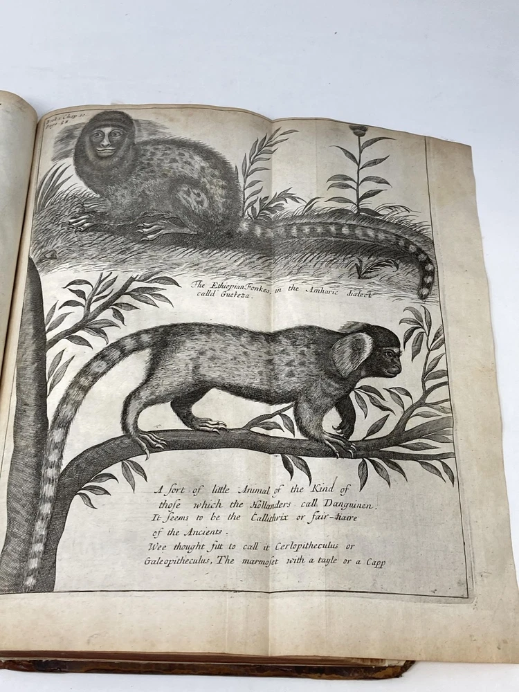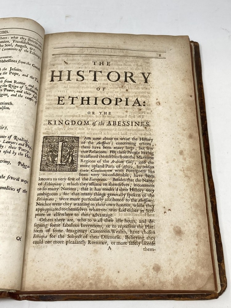 A NEW HISTORY OF ETHIOPIA: BEING A FULL AND ACCURATE DESCRIPTION OF THE KINGDOM OF ABESSINIA, VULGARLY, THOUGH ERRONEOUSLY CALLED THE KINGDOM OF PRESTER JOHN: IN FOUR BOOKS Author: Ludolphus, Job, translated by J.P. (Gent) Title: A NEW HISTORY OF ETHIOPIA: BEING A FULL AND ACCURATE DESCRIPTION OF THE KINGDOM OF ABESSINIA, VULGARLY, THOUGH ERRONEOUSLY CALLED THE KINGDOM OF PRESTER JOHN: IN FOUR BOOKS Publication: London: Printed for Samuel Smith Bookseller, at the Prince's Arms in St. Paul's Church-yard, 1684 Edition: Second Edition Description: Leather-bound. Full brown panel calf, (13 1/4 in. x 8 3/4 in.)with inner panels bordered in blind, and leading edge in gilt roll. Rebacked in smooth calf, with five raised bands (six compartments), and two contrasting spine labels of burgundy lettered in gilt (one the title ("History of Ethiopia") and the second erroneously labeled (as-if author) "Prester/John." Publication date blind-stamped to bottom compartment. Considerable scuffing to both boards, and rubbing to extremities but (now) quite sturdily bound. Replacement (with rebacking, we presume) endpapers, front and rear. Textblock lightly age-tanned but pages clear, large readable type, wide margins, and the thick, laid paper, quite supple.[38], 88 pp, 151-370pp, 375-398. Eight foldouts, seven of which are illustrations One single-page copper plate illustration. A single page chart of the Ethiopic language and a foldout "Genealogic Table of The Kings of Habessinia Missing large folding map, quite often the case with this title. Pagination is occasionally irregular, text divided into four books and complete. Good Plus. Wherein are contained: I. An account of the Nature, Quality and Condition of the Country, and Inhabitants; their Mountains, Metals and Minerals; their Rivers (particularly of the source. of the Nile and Niger;) their Birds, Beasts, Amphibious Animals (as the River Horse and Crocodile;) Serpents, &c. II. Their Political Government; the Genealogy and Succession of their Kings; a Description of their Court, and Camp; their Power and Military Discipline; their Courts of Justice, &c. III. Their Ecclesiastical Affairs; their Conversion to the Christian Religion, and the Propagation thereof, their Sacred Writings, their Sacraments, Rites, Ceremonies, and Church Discipline; the decrease of the Romish Religion, their Contentions with the Jesuits, their Separation from the Greek Church, etc. IV. Their private Oeconomy, their Books and Learning; their common Names, their Diet, Marriages, and Polygamies; their Mechanick Arts and Trades; their Burials, their Merchandize and Commerce, &c. Seller ID: 88161 Aardvark Rare Books Eugene, OR We work hard to make your Bookbuying Experience safe, easy and fun. Aardvark Books is a proud member of the ABAA (Antiquarian Booksellers Association of America) and IOBA, Independent Online Booksellers Association. Ezra is also an accredited and Qualified Appraiser of Books and Manuscripts, with a designation from the ASA (American Society of Appraisers), with considerable Archive experience as well. Shipping All books shipped to US destinations are sent via the US Postal Service. Faster shipping is available, please ask before paying. We will combine shipping on items purchased at the same time in order to help reduce costs. International shipping is also available. Please inquire for a shipping quote before ordering. This listing was created by Bibliopolis.