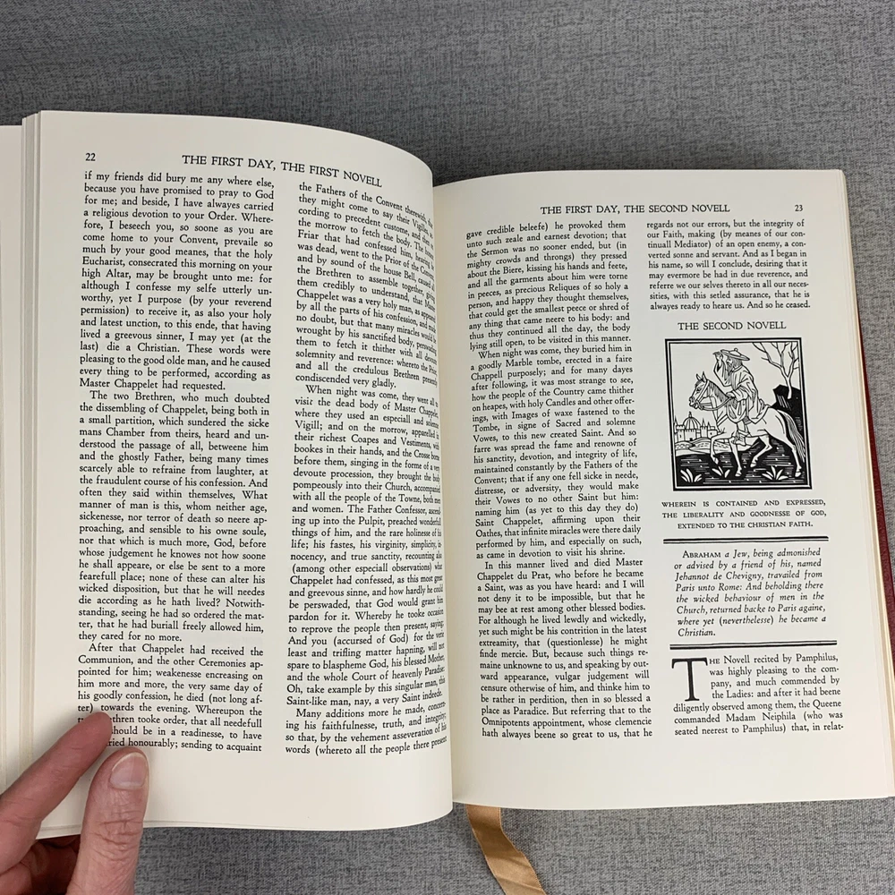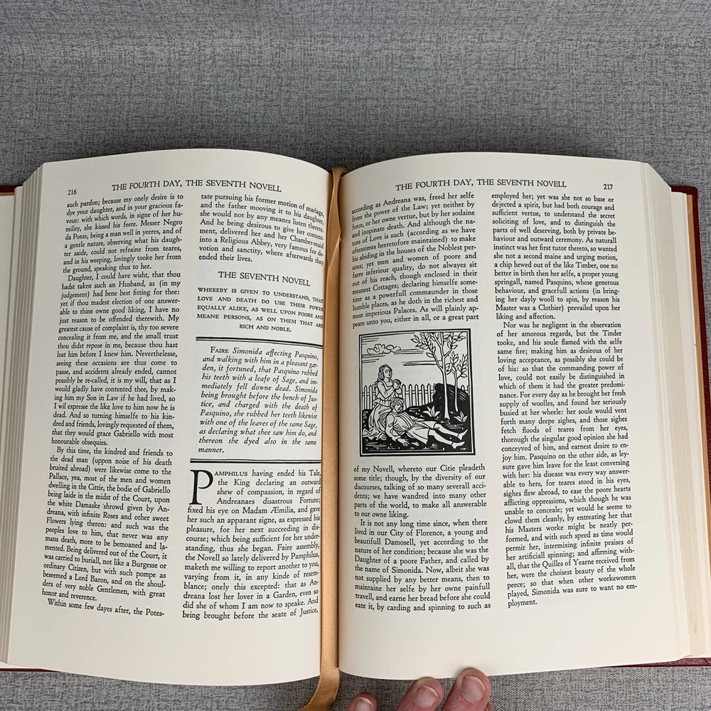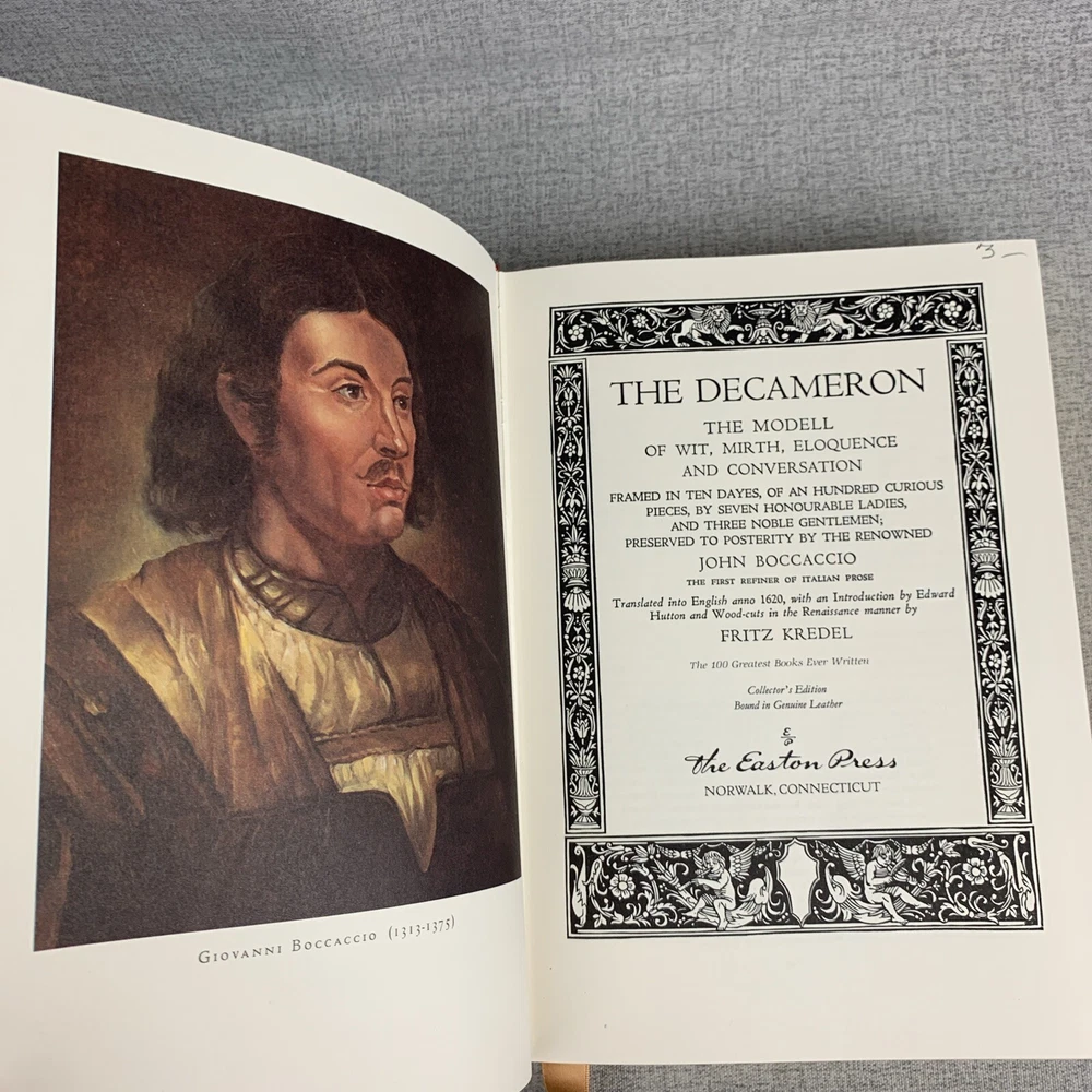 John Boccaccio THE DECAMERON Fritz Kredel Easton Press 100 Greatest Books A beautiful book, bound in rich red with intricate gold embossed covers and spine. In like new condition with little to no sig...