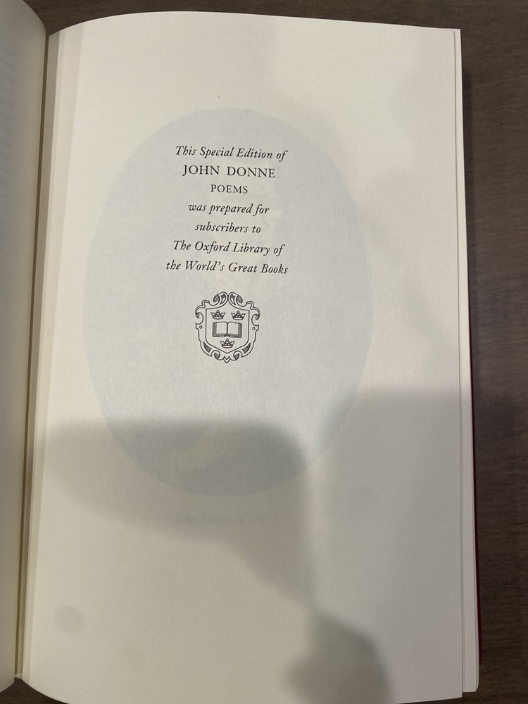 John Donne Poems CONDITION - New, stored Leather Bound Collector’s Edition, Special Edition PLEASE FEEL FREE TO EMAIL WITH QUESTIONS OR FOR MORE PICTURES. WILL COMBINE SHIPPING, PLEASE EMAIL FOR SHIPPING QUOTE. DON'T FORGET TO LOOK AT MY OTHER ITEMS! COMES FROM A SMOKE AND PET FREE HOME. PLEASE REMEMBER THAT IF YOU CHOOSE TO SHIP BY PARCEL POST, DELIVERY CAN TAKE AROUND 12 DAYS. I HAVE NO CONTROL OVER HOW LONG THIS DELIVERY METHOD TAKES. IF YOU NEED IT FAST, PLEASE CHOOSE PRIORITY MAIL FOR 3-4 DAY DELIVERY. PLEASE NOTE THAT IF YOU SHIP BY PARCEL POST, THERE IS NO RETURN SERVICE. ***DELIVERY CONFIRMATION IS REQUIRED, BUT THERE ARE SOME RESTRICTIONS AND IT IS NOT THE SAME AS INSURANCE. IF YOU WOULD LIKE INSURANCE, PLEASE LET ME KNOW. Please be aware that delivery confirmation does NOT cover lost or damaged packages. Please let me know if you want to pay for insurance (which is more expensive) than the delivery confirmation that is included in the postage amount. I am not responsible for packages shipped without insurance. ALSO, PLEASE NOTE THAT ALTHOUGH DELIVERY CONFIRMATION HAS A 'TRACKING NUMBER,' ACCORDING TO THE POST OFFICE, THIS NUMBER DOES NOT HELP YOU ACTUALLY TRACK THE PACKAGE. THE NUMBER ONLY CONFIRMS THAT THE PACKAGE WAS DELIVERED. ALL ITEMS MAY BE SHIPPED IN RECYCLED BOXES, THIS KEEPS THE COST DOWN FOR YOU AND IS GOOD FOR THE PLANET! RETURNS ARE ACCEPTED IF THE SOMETHING IS LISTED INCORRECTLY IN THE DESCRIPTION. I HAVE INCLUDED MEASUREMENTS THAT WILL HELP DETERMINE FIT. RETURNS MUST BE MADE WITHIN SEVEN DAYS OF RECEIVING ITEM. POSTAGE IS NON-REFUNDABLE. PAYMENT IS DUE WITHIN THREE DAYS OF PURCHASE. IF THERE ARE PROBLEMS WITH THAT TIME FRAME, PLEASE CONTACT ME - I AM WORKABLE IF THERE IS COMMUNICATION! IF I HAVE NOT HEARD FROM YOU IN THREE DAYS, I WILL OPEN AN UNPAID CLAIM. COMMUNICATION IS THE KEY!!!