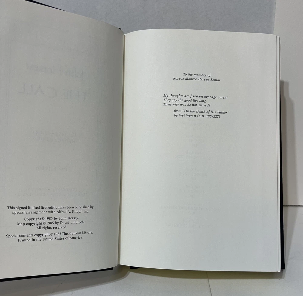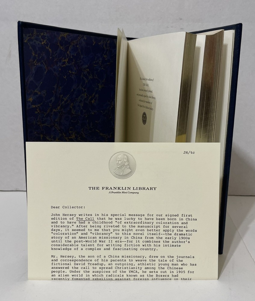 John Hersey. The Call. Signed 1st Edition. Franklin Library. Leather Bound 1985