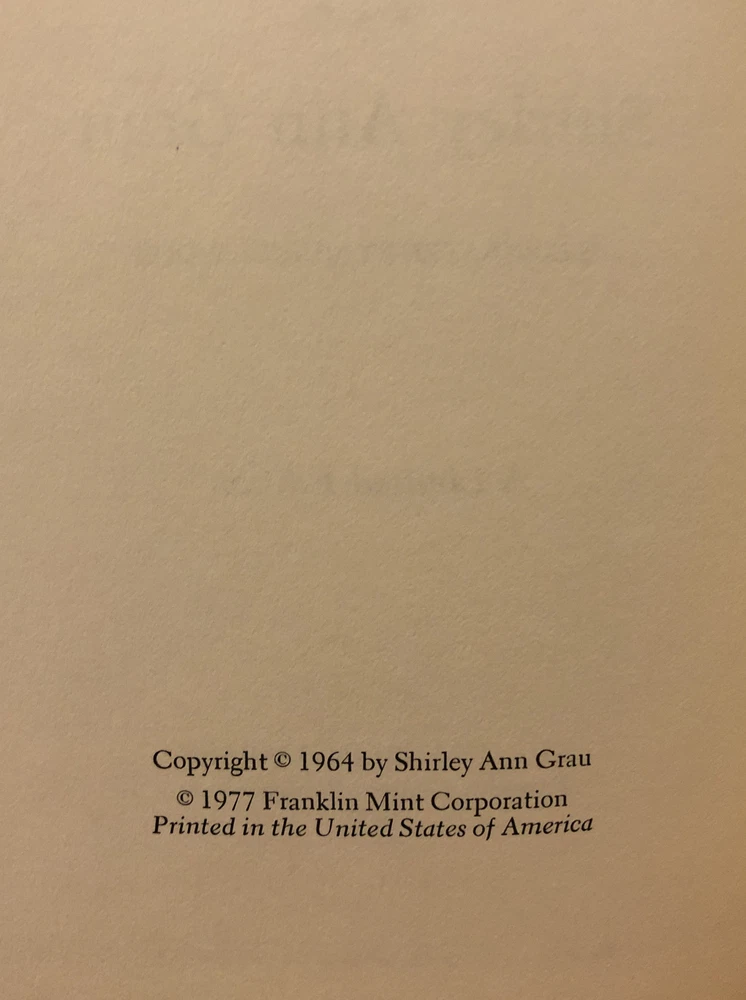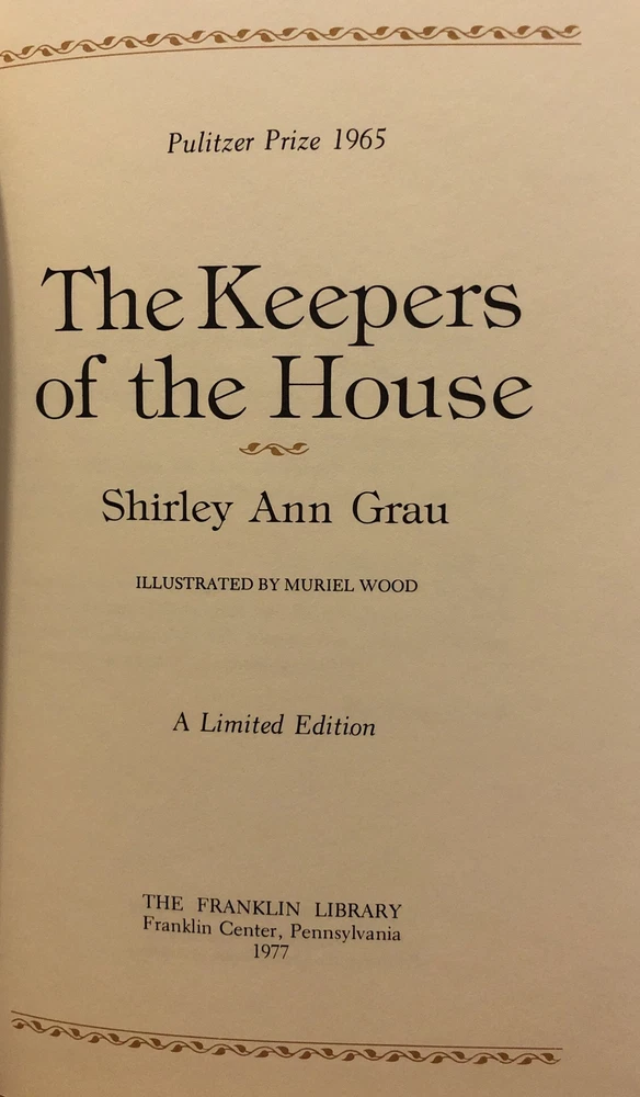 Keepers of the House by Shirley Ann Grau Franklin Library 1977 Leather Ltd Ed. This is a leather limited edition embossed binding book with gold page edges and a satin bookmark. Very pretty.ππ€