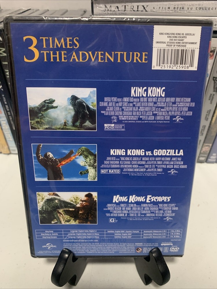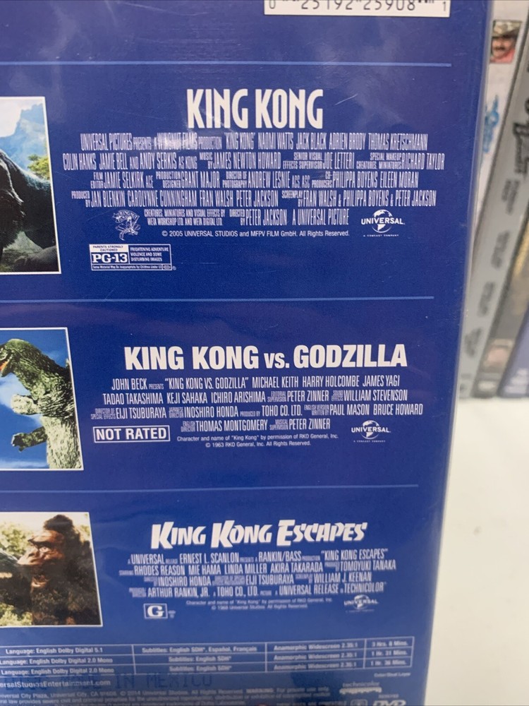 Including: 1. King Kong (2005) 2. King Kong vs. Godzilla 3. King Kong Escapes BRAND NEW factory sealed never opened! Case and artwork in perfect condition! Check out my other items and look for my Buy 3 get 1 free sale on all dvds, cds, blu rays VHS and video games in my store! Must add 4 items to your cart to get the sale! Follow me for I post new items daily including cds, dvds and blu rays, games, action figures and more! All dvds, cds and blu rays are all authentic! I do not sell bootlegs. If multiple dvds, blu rays and cds are bought they will all be shipped together in a nicely packed box to avoid damage. All large box sets will be shipped in a box. All of my items come from a smoke and pet free home. Make me an offer on multiple items and I will gladly combine shipping! Tracking is provided for all orders!