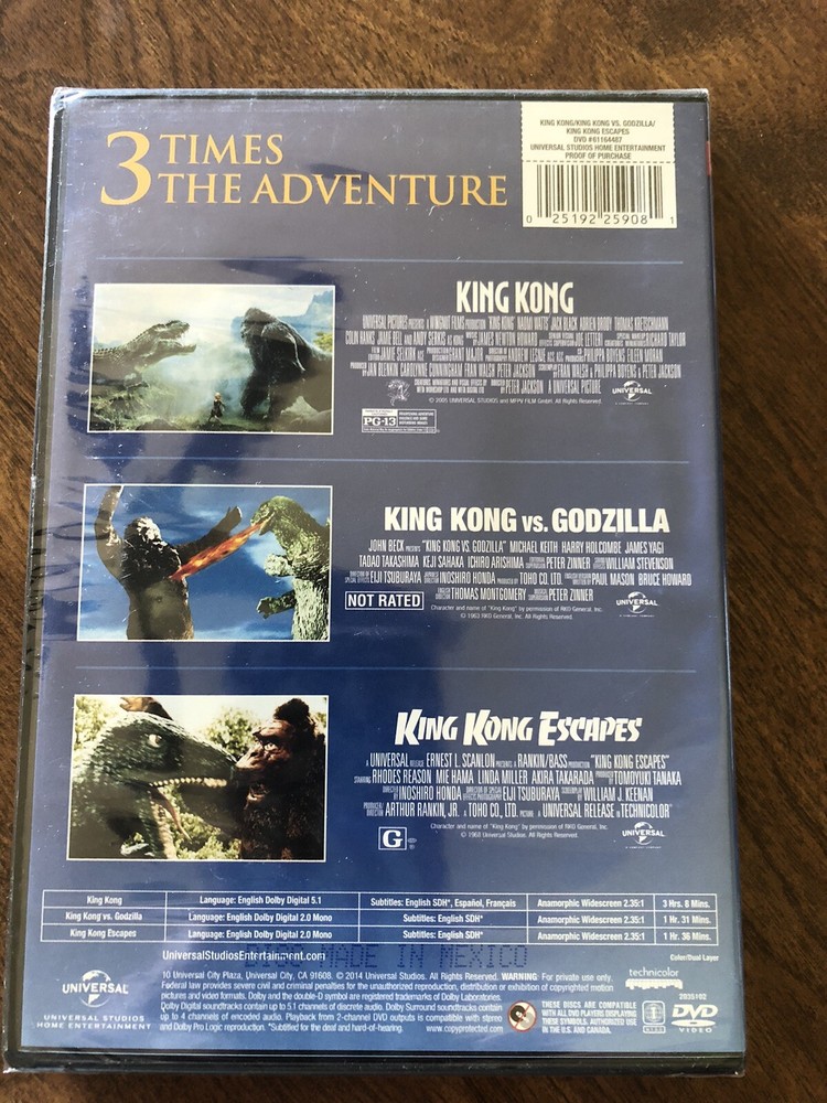 This King Kong DVD set is a must-have for monster movie fans! Packed with epic battles, thrilling adventures, and legendary creatures, it delivers nonstop entertainment. The widescreen format brings the action to life, and the sealed, brand-new condition ensures top quality. Perfect for collectors or anyone who loves classic monster showdowns—highly recommended!