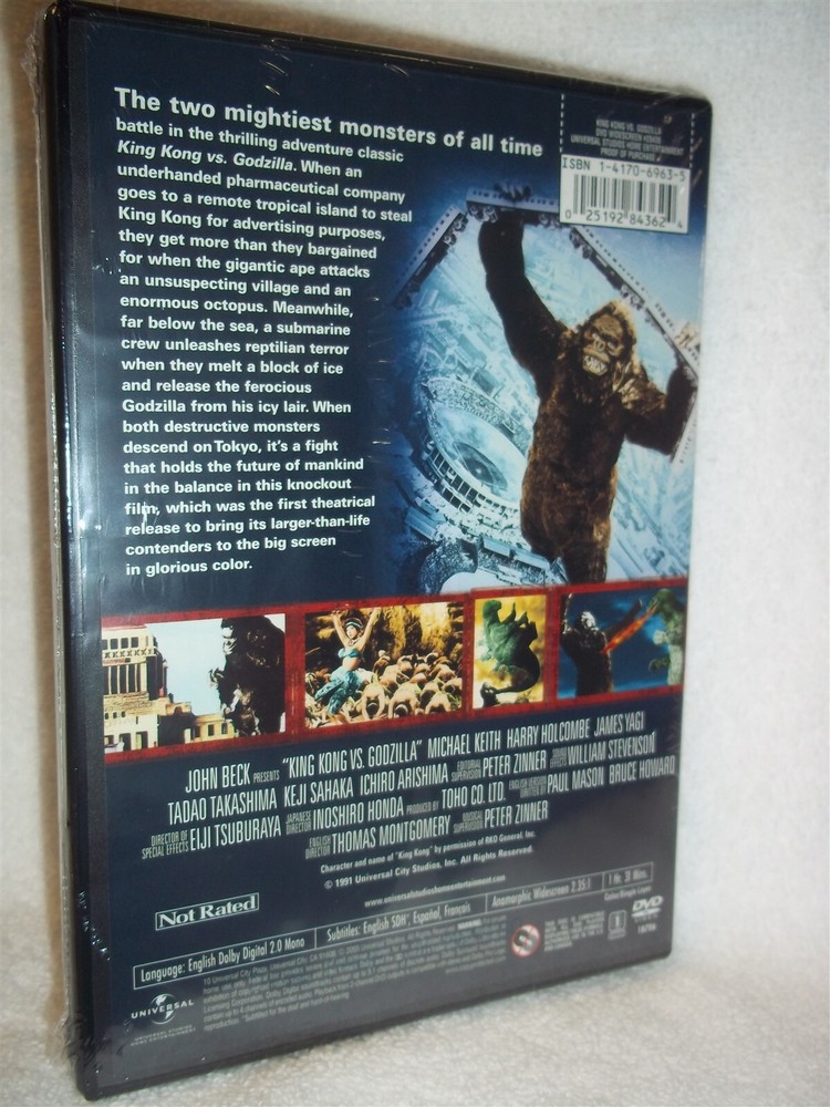 PLEASE READ BELOW BEFORE BIDDING AND ASKING ANY QUESTIONS ITEM DESCRIPTION This DVD is previously viewed but in EXCELLENT condition. The disc(s) is LIKE NEW. It includes all the original cases, covers, inserts and, of course, the disc(s) itself. Product Description Ishiro Honda directs this classic Japanese sci-fi adventure featuring a clash of the cinematic titans as King Kong and Godzilla square off for a monster showdown. At the same time as a pharmaceutical company manager undertakes an expedition in search of the mystical berries that confer gigantic size on the legendary Kong, a team of American pilots have discovered the frozen tomb of the fearsome Godzilla. When they thaw him out, the stage is set for a titanic battle between the two oversized creatures. OUR TERMS AND GUARANTEES We will contact the auction winner(s) via email within 24 hours of auction close with any specific instructions that may be necessary to complete the transaction. We will also notify the auction winner(s) when their order has been shipped by sending an email to their ebay email address. WE DO NOT SELL illegal bootleg tapes, copies, screeners, or any type of illegally burned CDs/DVDs! ALL ITEMS ARE FACTORY ORIGINALS and, unless otherwise noted, include their ORIGINAL US factory made cases, inserts/game book and, of course, the items themselves. All DVDs are GUARANTEED. If you receive a damaged, defective or otherwise unusable item from us, please inform us within 15 days of shipment and we will replace the defective product. In the event that the defective item is no longer available, we will substitute for another item, credit your account or issue a refund minus the Shipping. Buyer must make contact within 3 days of the end of auction and payment must be made within 10 days of the end of auction. Please have funds ready to send when you are bidding. Your personal information will never be shared or sold to anyone. Your transaction is strictly confidential, and you will receive your product in discreet packaging . Finally, there should NEVER be a reason to leave us negative feedback. That is NOT the proper way to get our help with a problem, just contact us and give us a chance to provide an appropriate solution. Permanently hurting our reputation by leaving us negative feedback or threatening negative feedback will NOT get you the service you are looking for, again, just email us if you have a problem with your purchase. PAYMENT TERMS Payment is expected within 10 days after the auction closes. Please include the following with your payment: Username Auction number(s) Item name Shipping Address We accept the following forms of payment: . PAYPAL Credit Cards (Contact us for details) SHIPPING TERMS Your DVD(s) will be shipped within 48 hours of receipt of payment. All DVDs will be shipped discreetly . The flat rate shipping fee using USPS FIRST CLASS MAIL is $ 3.00 for the 1st DVD, $2.00 for each additional within the USA . International orders, INCLUDING CANADA, using USPS AIRMAIL are $20.00 for the first DVD, $5 for each additional. Rush and Expedited shipping options are available to most areas; please feel free to contact us for pricing and other details regarding the auction. I COMBINE SHIPPING Please View Our Other Auctions And Save On Shipping Powered by SixBit's eCommerce Solution