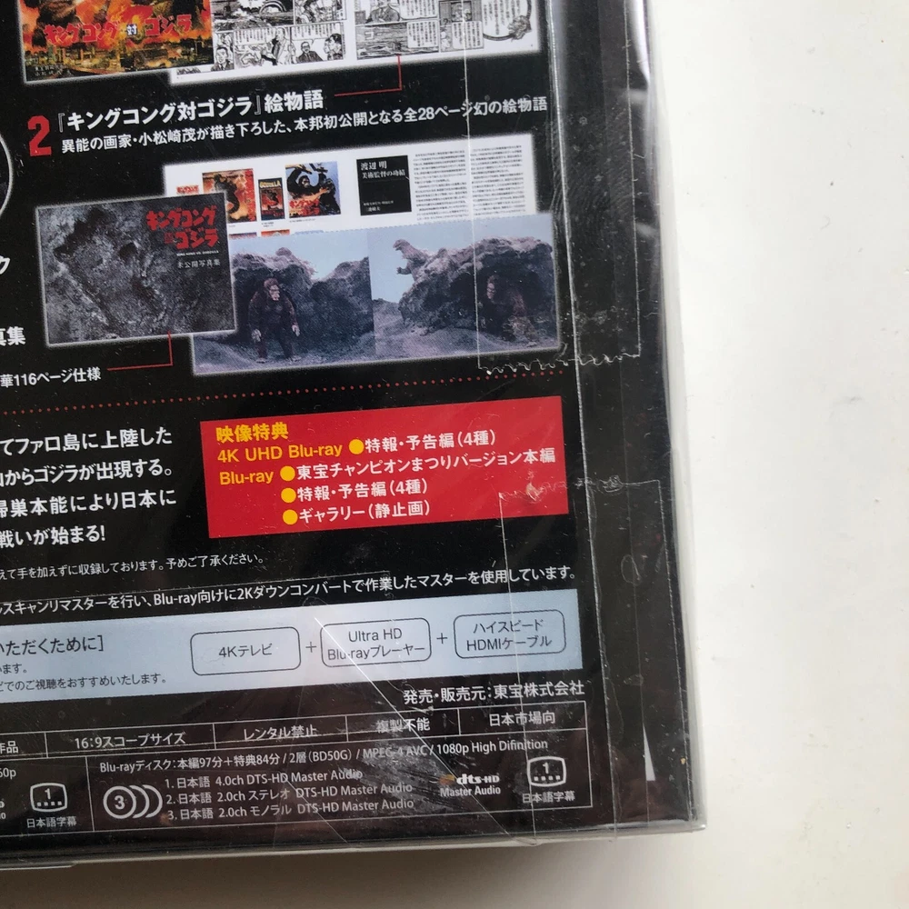 100% Authentic official product from Japan Title: King Kong vs. Godzilla 4K Remastered Format: 4K Ultra HD Blu-ray (Region: free) Number of Discs: 1 Director: Ishiro Honda Writer: Shin'ichi Sekizawa Starring: Tadao Takashima, Kenji Sahara, Yû Fujiki, Jun Tazaki, Akihiko Hirata, Mie Hama Producer: Tomoyuki Tanaka Color: Color Running Time: 97 Minutes Original Release Year: 1962 Aspect Ratio(s): Cinemascope Subtitles: None Audio Track: Japanese DTS HD Master Audio 2.0ch, Japanese DTS HD Master Audio 4.0ch, Japanese DTS HD Master Audio Monaural Will Godzilla win? Will Kong win? The greatest duel of the 20th century! A set of a 4K UltraHD Blu-ray and a Blu-ray featuring the film "King Kong vs. Godzilla" plus two deluxe booklets (28-page story book with pictures by Shigeru Komatsuzaki and 116-page photo book). Slipcase packaging. [Main DISC1 4K Ultra HD Blu-ray] Special features: Trailers, Special features [Main DISC2 Blu-ray] Special features: Toho Champion Festival version “King Kong vs. Godzilla,” trailer, special trailer, still gallery (still images) [Inclusions / Spec] - King Kong vs. Godzilla" Story Book (28 pages) - King Kong vs. Godzilla" unpublished photo collection (116 pages) - Slipcase *Ultra HD Blu-ray player is necessary to play this Ultra HD Blu-ray disc. Please note that it will not play on regular Blu-ray player. For optimal viewing experience of 4K UltraHD content, 4K/HDR TV is recommended, although it is also compatible with 4K TV and HV TV. [About 4K UltraHD] 4K UHD boasts high resolution of 3840 pixels x 2160 lines (8.3 megapixels, aspect ratio 16:9), which is twice the horizontal and vertical resolution compared to the 1080p HDTV format, with four times as many pixels overall. Shipping Shipping from Fukuoka, Japan by Japan Post Standard post with tracking number provided Shipping duration depends on where you live Item may be delayed in shipping and arriving due to the effect of the social issues. We appreciate your understanding. Upgrading shipping by FedEx will be extra cost of USD10.00 - USD20.00 - Please contact seller for the upgrade shipping International Buyers - Please Note: Import duties, taxes, tax agent's handling fee and any other charges are not included in the item price or shipping cost. These charges are the buyer's responsibility. Please check with your country's customs office to determine what these additional costs will be prior to bidding or buying. Thank you for your understanding. Please Do not hesitate to contact me if you have any questions, or if you are looking for any other item from here in Japan, I am always happy to assist. THANK YOU!