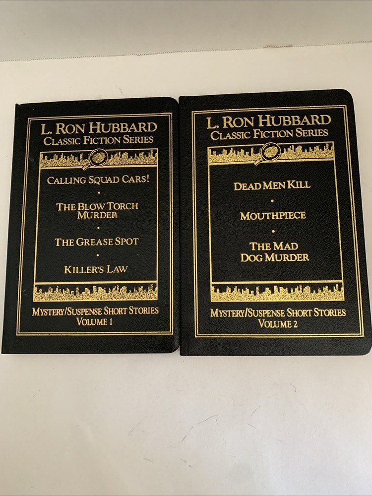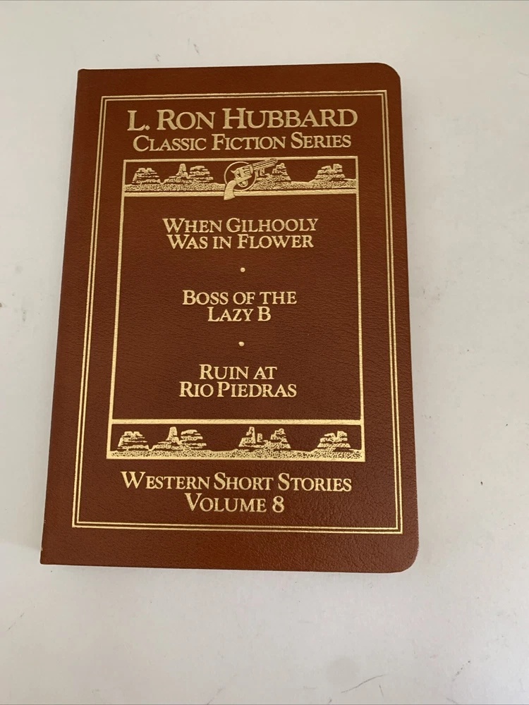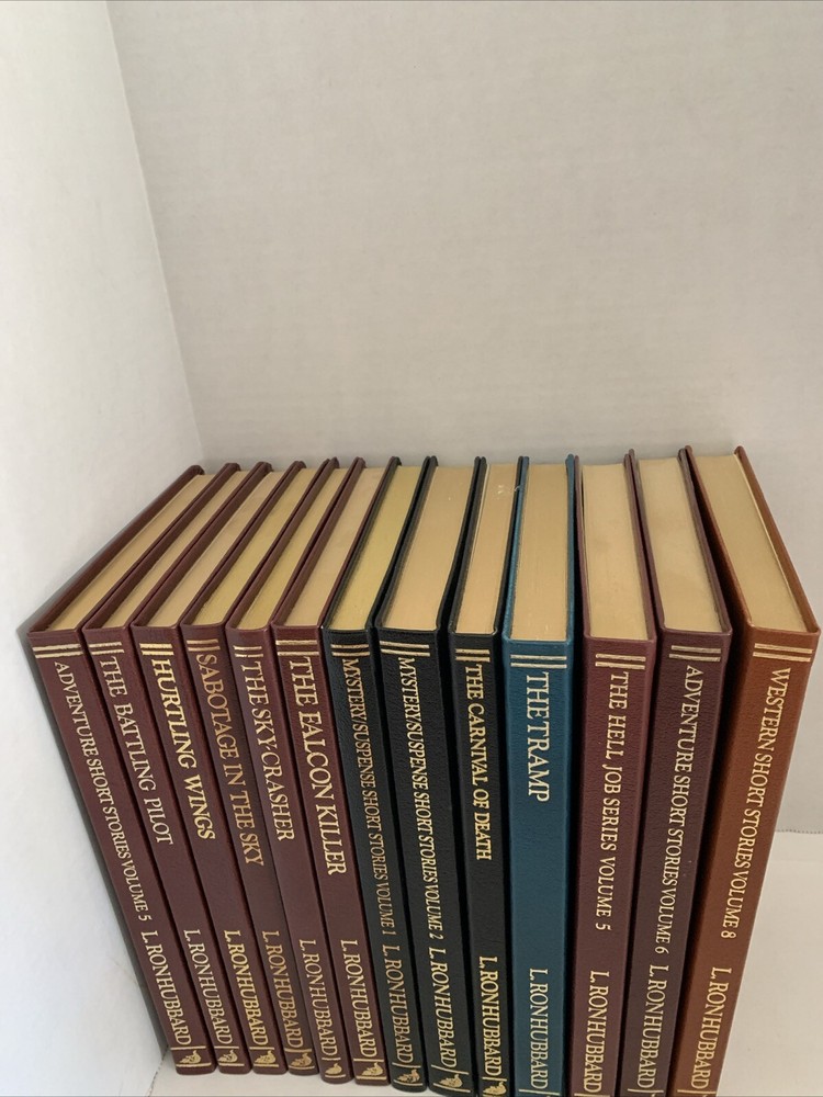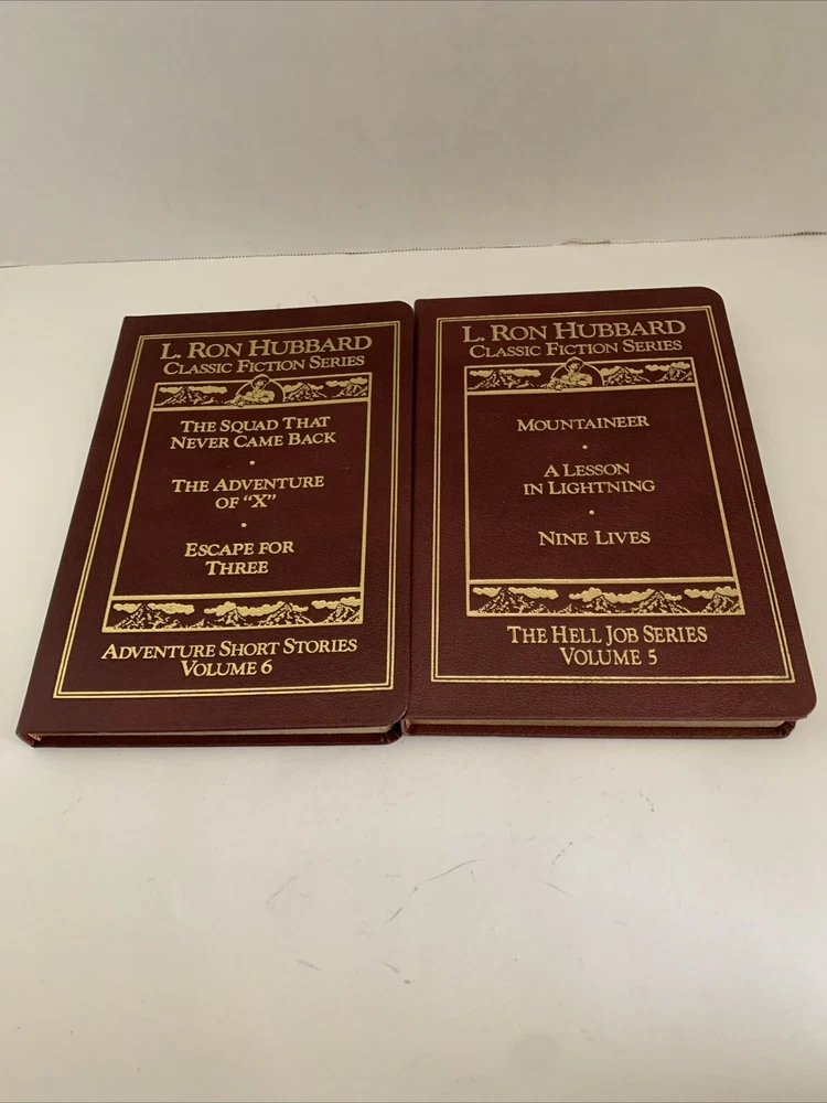 This is a set of 13 hardcover books from L. Ron Hubbard's Classic Fiction Series. The leather bound cover editions feature gilt edges and are in excellent shape. The books are written in English and include a variety of titles. The narrative type is fiction and the author is L. Ron Hubbard. The publisher is Author Series Inc. and the original language is English. Perfect for collectors or those interested in the author's work. See pictures for condition