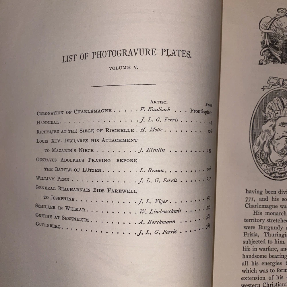 Title: Library of Historic Characters & Famous Events Vol. 5 - Hannibal/Goethe 1895 - Gravures STANDARD EDITION. | Limited Edition, Signed | Free Shipping in USA Description: Discover a rare and collectible antiquarian volume from the "Library of Historic Characters & Famous Events" series with this exquisite offering of Volume 5 - Hannibal/Goethe. Published in 1895 by William Finley in Philadelphia, Pennsylvania, this limited edition set is signed by the main editor and is one of only 1000 sets ever produced. This volume is a treasure trove for history enthusiasts and scholars alike. It features 400 pages of scholarly content accompanied by ten photogravure plates, including a stunning frontispiece plate, all protected by tissue guards. The plates showcase remarkable paintings, adding visual depth and beauty to the narratives. The book is printed on heavier quality laid paper with a top edge gilt finish, ensuring durability and a touch of elegance. The binding of this volume is half dark brown leather with corners, showcasing an exquisite craftsmanship. While the spine leather has naturally lightened to a tan shade due to its age, it remains adorned with gilt titles and decorative motifs. The marbled boards add a touch of sophistication to the overall aesthetic. Please refer to the provided scan for a visual representation of the age-worn leather spine and corners. Internally, this volume is in exceptional condition, with clean and supple pages. The quality paper has withstood the test of time, ensuring a pleasurable reading experience. The plates retain their beauty, enhancing the historical narratives. Overall, the volume is in very good++ condition, with the marbled boards solid, tight, and crisp. This volume is a terrific read, offering insights into the lives of Hannibal, Goethe, Charlemagne, Richelieu, Massena, Gutenberg, Caxton, Captain Cook, William Penn, King John, and many other notable figures and events. As a historian or collector, this antiquarian volume is highly desirable and collectible. It is scarce and features some exquisite plates, making it a valuable addition to any collection. Don't miss your chance to own this remarkable piece of history. Enjoy the privilege of free shipping within the United States and secure this captivating volume from the "Library of Historic Characters & Famous Events" series today. Order now and relish the opportunity to immerse yourself in the captivating narratives and beautiful plates of this historically significant volume. Welcome to our listing for the "Library of Historic Characters & Famous Events #V - Hannibal/Goethe 1895" book! This captivating volume is part of a prestigious series that delves into the lives of notable figures and significant events from history. This specific edition focuses on the intriguing connection between the legendary military strategist Hannibal and the renowned German writer Johann Wolfgang von Goethe. Published in 1895, this standard edition showcases a wealth of information, stunning gravures, and engaging narratives that transport readers back in time. Explore the lives of two remarkable individuals who left an indelible mark on history. Learn about Hannibal's ingenious military tactics, his audacious crossing of the Alps, and his epic battles against Rome. Discover Goethe's literary genius, his influence on German Romanticism, and his notable works that have shaped the world of literature. This book is a treasure trove for history enthusiasts, scholars, and anyone with a passion for compelling narratives. The gravures included within its pages add visual richness, providing vivid depictions of key moments and figures from the era. Immerse yourself in the vivid details and gain a deeper understanding of the historical context surrounding Hannibal and Goethe. We take pride in offering free shipping within the USA, ensuring that this valuable addition to your collection will arrive at your doorstep with no additional cost. This book is in good condition, considering its age, and will make a splendid addition to any library or collection. Don't miss the chance to own this enchanting piece of history. Secure your copy of the "Library of Historic Characters & Famous Events #V - Hannibal/Goethe 1895 (Gravures)" book today and embark on a captivating journey through time! Specifications: Title: Library of Historic Characters & Famous Events #V - Hannibal/Goethe 1895 (Gravures) Publication Year: 1895 Format: Hardcover Condition: Good Free Shipping within the USA Please feel free to contact us if you have any questions or require further information. We are here to assist you in any way we can.