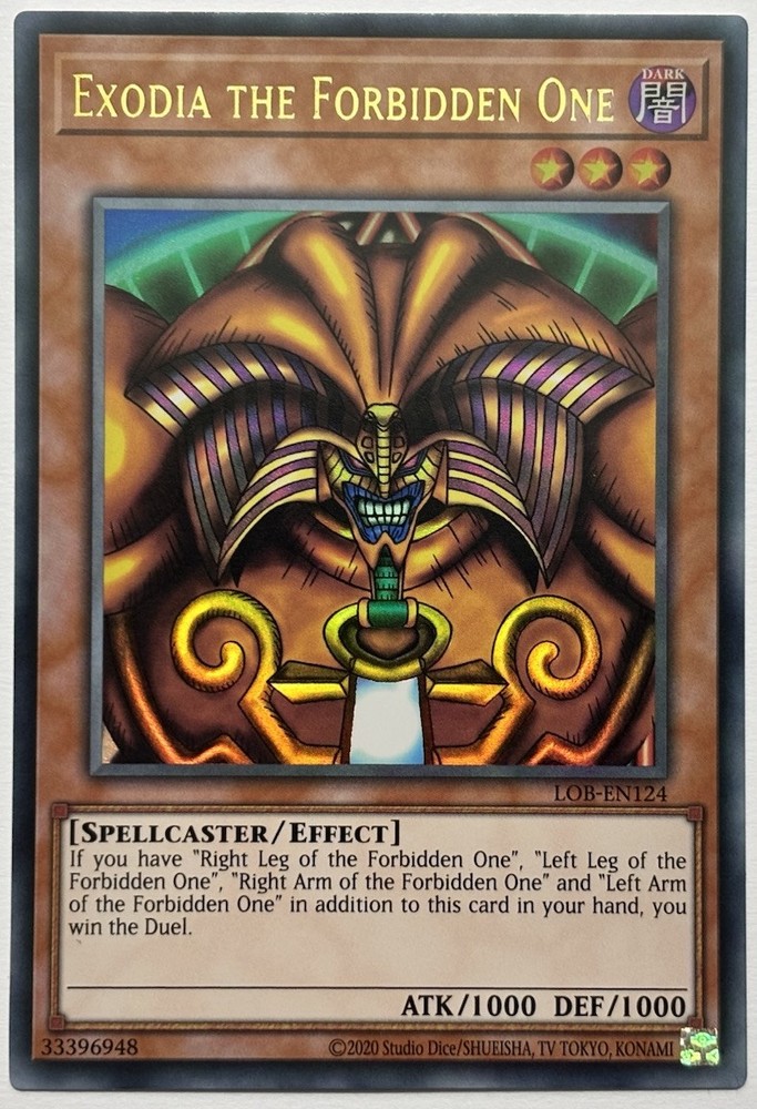 LOB-EN124 Exodia the Forbidden One - Ultra Rare Unlimited Near Mint YuGiOh Card Please see images for any defects, as cards will be received as shown. Further images available on request. All conditions have been evaluated using Ebay's card condition guidelines for collectible card games, which can be found at a glance in the images and also viewed here in more detail: eBay card condition guidelines | eBay.co.uk I am currently selling all cards within my collection, with many still to be listed. Please check out my eBay profile for other offerings. Thanks for viewing!