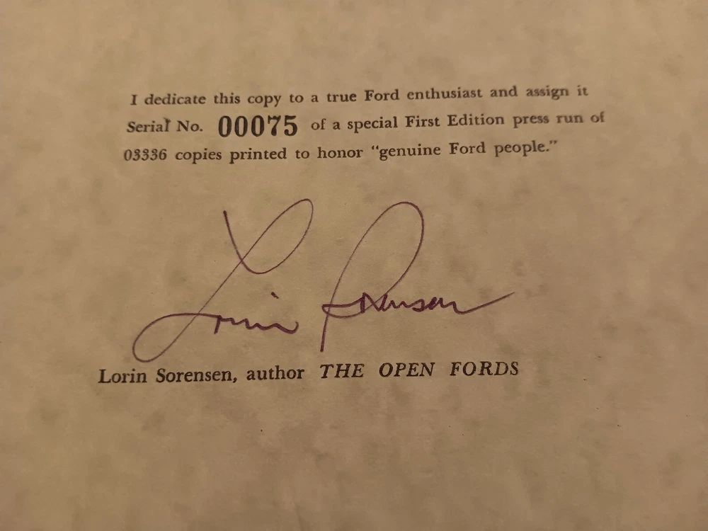 COMPLETE SET OF 6 LOREN SORENSEN FORDIAN BOOK SERIES ON EARLY FORDS First Edition-- Copyright =1975--Library of Congress # 75-4106--leather bound--each book signed by Loren Sorensen Serial # 00075 out of 3,336 sets--Condition of Each Book is Excellent (Great for Display or Collection) Original owner Size of each book =16" x 11" x 1"-- (These books have always been in a protected book case) Title of each book 1 THE AMERICAN FORD: 1975 2.THE FORD SHOWS: 1976 3. THE OPEN FORD: 1977 4. THE FORD FACTORY; 1980 5. THE COMMERCIAL FORD: 1984 6. THE GOOD OLD FORDS: 1985
