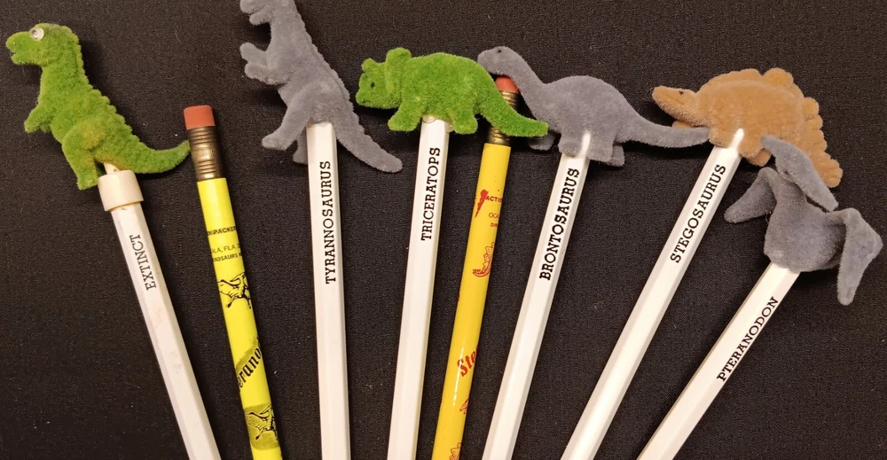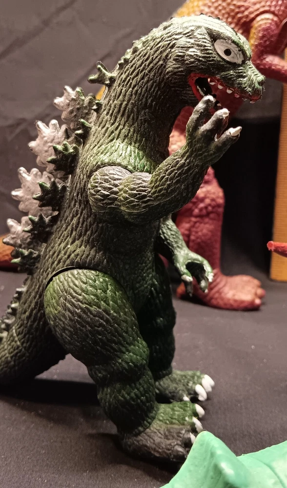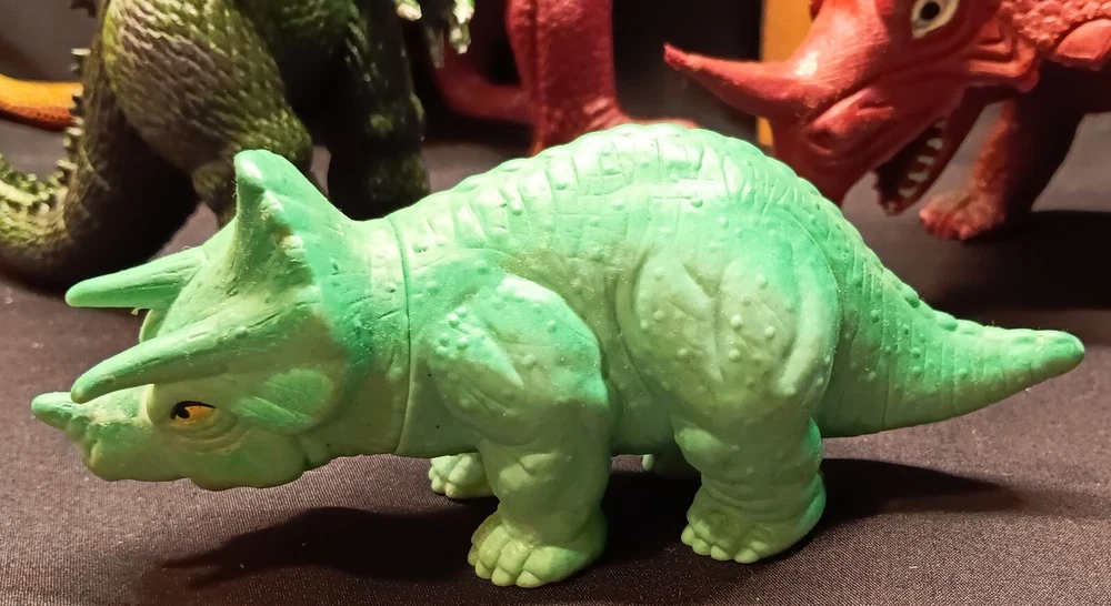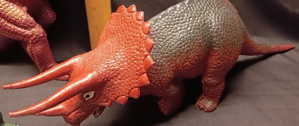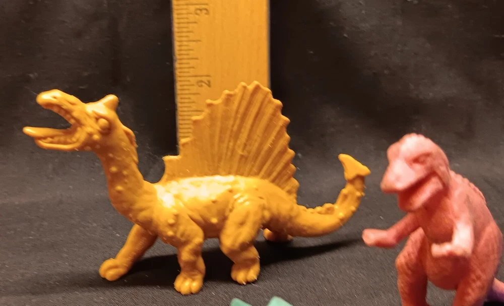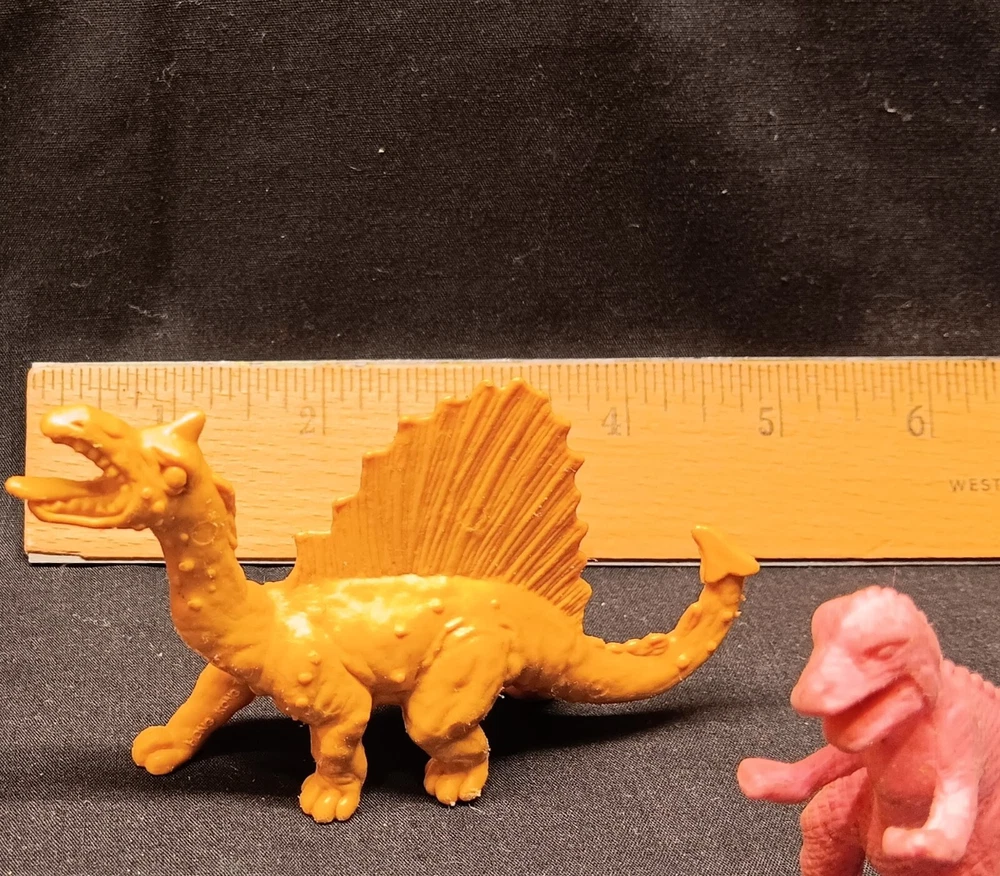 This is a fun and educational mixed lot of various dinosaur collectibles for that lucky young dinosaur enthusiast in your life. Consisting of: 6 large vinyl/hard rubber various dinosaur figures, the largest measuring almost 11" tall and includes a TOHO Godzilla figure 15 smaller soft rubber dinosaur/reptile figures, the largest measuring 2" tall and 5" wide 8 new unused dinosaur themed pencils with a dinosaur name on each, most topped with a mini dinosaur figure 1 dinosaur themed mug featuring a blue Brontosaurus (mug has a crack and not good for liquids but great as a pencil holder) 2 new unopened dinosaur shaped notepads each in a different color and dinosaur type 1 custom made dinosaur bank that can be filled with change or used as a desk accessory slotted paper holder/paper weight 1 fabulous wooden dinosaur skeleton puzzle measuring 10 1/2" tall and 19" long The puzzle will be shipped disassembled for postage saving but all the parts are numbered and is somewhat easy to reassemble in the correct order (see detail photos). A very unique assortment of dinosaur goodies!! We pack very securely and ship fast! Track Page Views With Auctiva's Counter