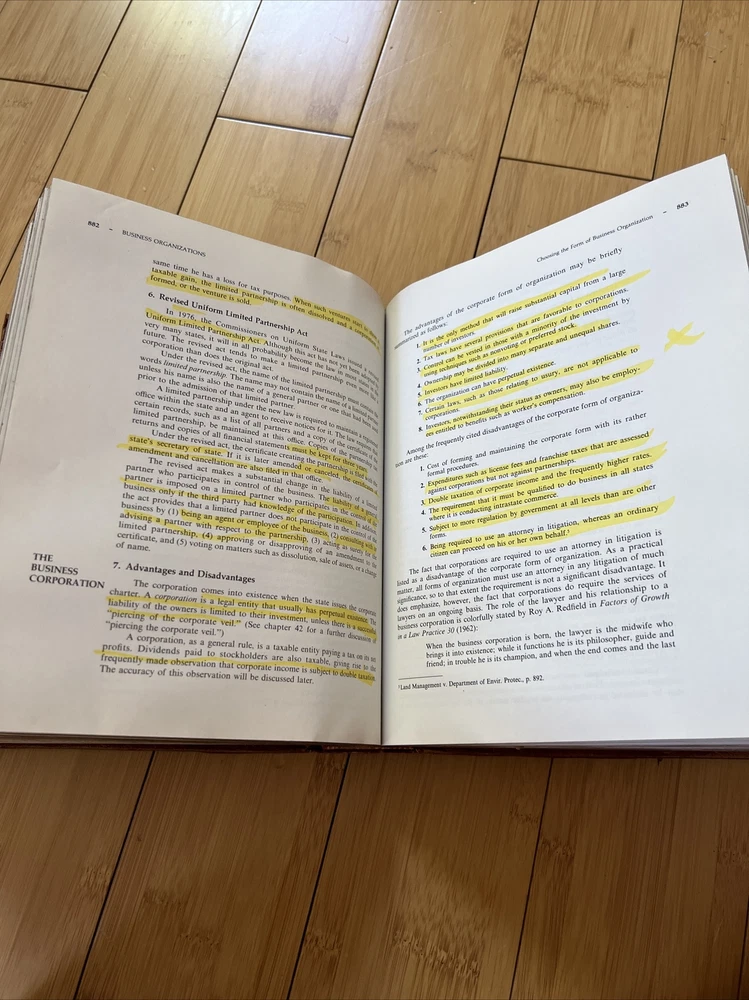 Leather Back Principles of Business Law Thirteenth Edition. Gold pages. Have not been used in years, pages are stiff and a few pages have yellow marked highlighter. Please see photos for reference. Binding is overall in good condition.