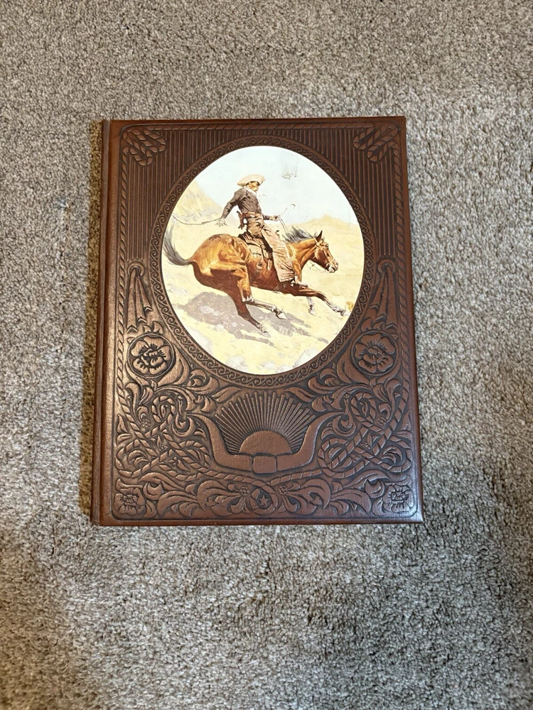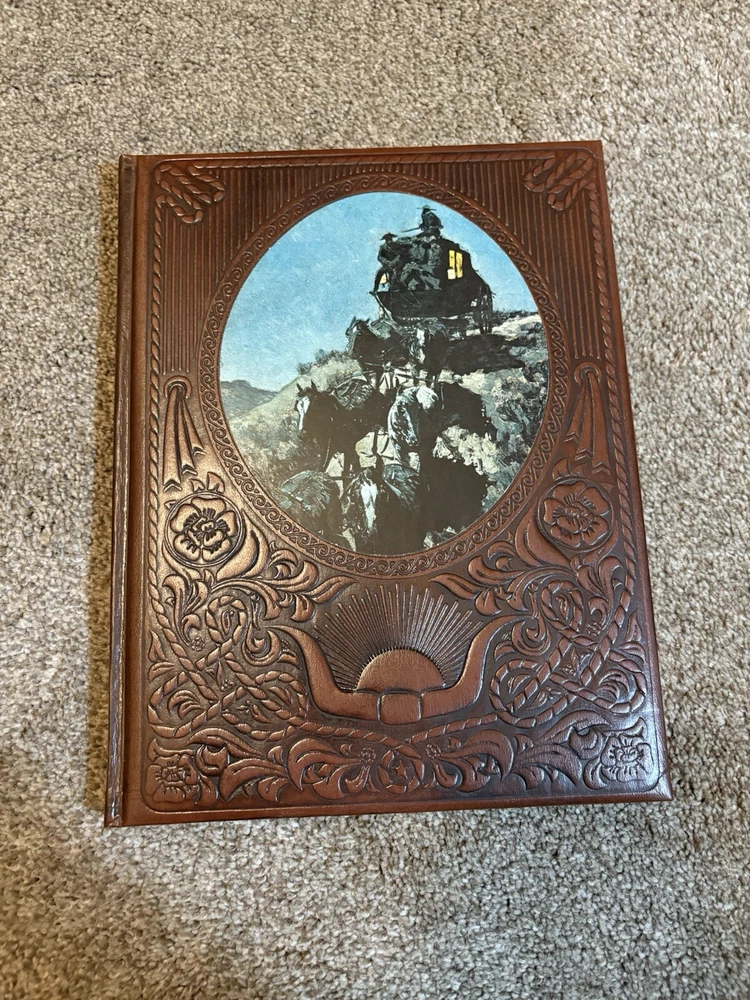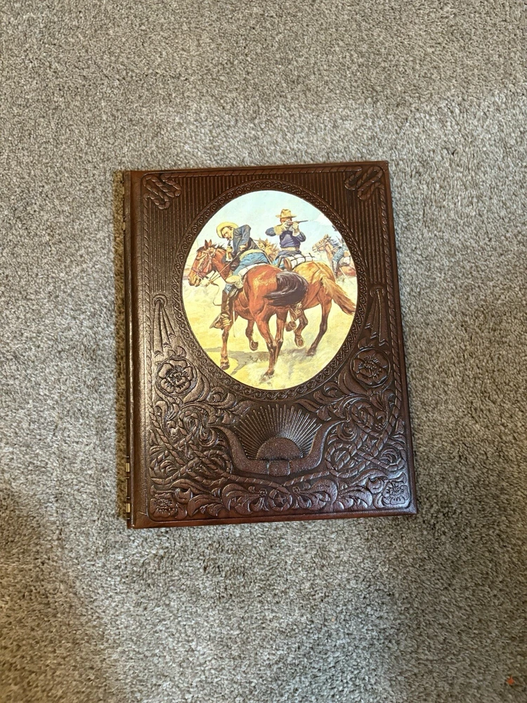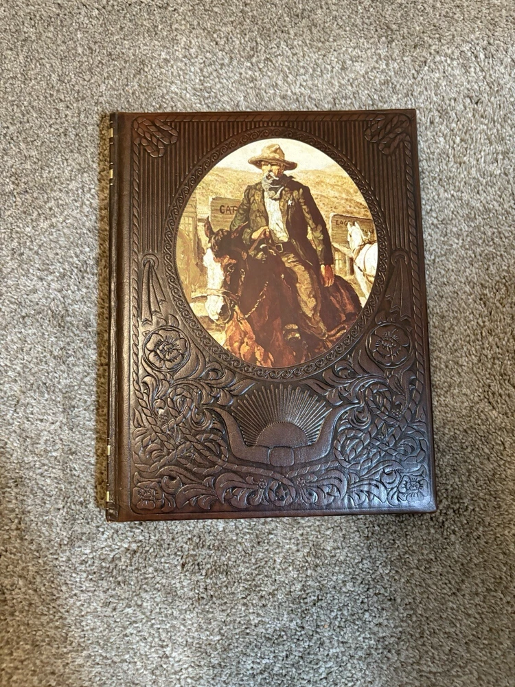 Old West Leather Bound set of 13 in excellent condition The Expressmen The Forty-Niners The Railroaders The Chronicles The Soldiers The Pioneers The Cowboy The Rivermen The Indians The Gunfighters The Trailblazers The Loggers The Texans