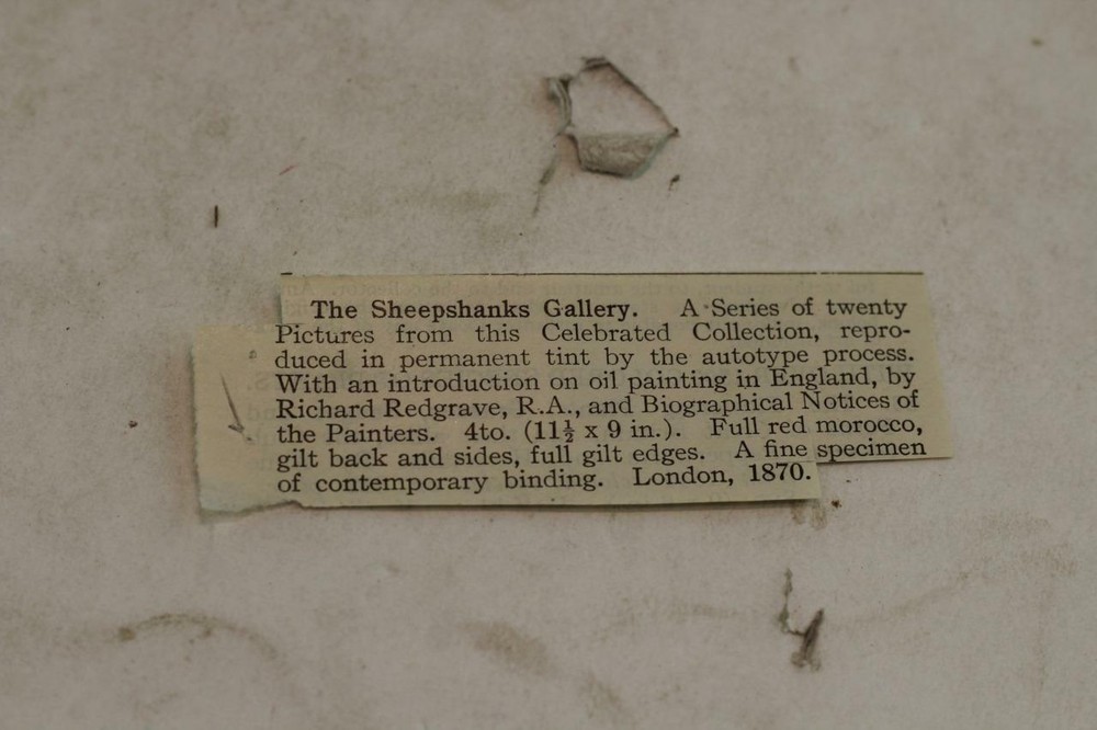 Leather. Large 4to. Bell and Daldy, London, UK. 1870. iv, 106 p. 20 Autotype on heavy card. Bound in full red morocco, gilt back and sides, all edges gilt. Boards have light shelf-wear present to the extremities. Heavy cardstock pages are waved but the images seem unaffected (see photo #4 of the fore-edge). Soil present to the reverse of the FFEP. No ownership marks present. Text is clean and free of marks. Binding tight and solid. In that year John Sheepshanks offered the Museum his collection of around 500 modern British oil paintings, watercolours and drawings to found a 'National Gallery of British Art' . His gift included major works by Turner and Constable, and substantial groups of pictures by a number of important Victorian artists. He preferred the 'open and airy situation' of South Kensington to the polluted atmosphere of central London, and believed in the importance of making art accessible to the public. The first of his galleries opened in 1857 and is the earliest surviving part of the V&A. The building was extended with further top-lit galleries in 1858-65. Sheepshanks made his gift ‘in the hope that other proprietors of pictures and other works of art may be induced to further the same objects’. The new museum received the seal of royal approval in 1865 when Queen Victoria agreed to lend the Raphael cartoons, the greatest cycle of Italian Renaissance pictures in England. These public-spirited gestures encouraged a series of bequests and gifts, which form the core of the Museum’s collection of pictures. Leather The Sheepshanks Gallery Twenty Pictures Reproduced by Autotype Process Leather The Sheepshanks Gallery Twenty Pictures Reproduced by Autotype Process Description Up For Sale Today is The Sheepshanks Gallery A Series of Twenty Pictures from this Celebrated Collection Reproduced in Permanent Tint by the Autotype Process Introduction by Richard Redgrave Leather. Large 4to. Bell and Daldy, London, UK. 1870. iv, 106 p. 20 Autotype on heavy card. Bound in full red morocco, gilt back and sides, all edges gilt. Boards have light shelf-wear present to the extremities. Heavy cardstock pages are waved but the images seem unaffected (see photo #4 of the fore-edge). Soil present to the reverse of the FFEP. No ownership marks present. Text is clean and free of marks. Binding tight and solid. In that year John Sheepshanks offered the Museum his collection of around 500 modern British oil paintings, watercolours and drawings to found a 'National Gallery of British Art' . His gift included major works by Turner and Constable, and substantial groups of pictures by a number of important Victorian artists. He preferred the 'open and airy situation' of South Kensington to the polluted atmosphere of central London, and believed in the importance of making art accessible to the public. The first of his galleries opened in 1857 and is the earliest surviving part of the V&A. The building was extended with further top-lit galleries in 1858-65. Sheepshanks made his gift ‘in the hope that other proprietors of pictures and other works of art may be induced to further the same objects’. The new museum received the seal of royal approval in 1865 when Queen Victoria agreed to lend the Raphael cartoons, the greatest cycle of Italian Renaissance pictures in England. These public-spirited gestures encouraged a series of bequests and gifts, which form the core of the Museum’s collection of pictures. OUR MISSION STATEMENT: Our goal is to provide the best books for the lowest prices. We understand that you have more choices than ever to buy books, so we strive to provide the best service, accurate descriptions, the cheapest shipping and the best customer service in the realm of bookselling. Thank you for visiting this listing and we hope to see you again soon! Book formats and corresponding sizes Name Abbreviations Leaves Pages Approximate cover size (width × height) inches cm folio 2º or fo 2 4 12 × 19 30.5 × 48 quarto 4º or 4to 4 8 9½ × 12 24 × 30.5 octavo 8º or 8vo 8 16 6 × 9 15 × 23 duodecimo or twelvemo 12º or 12mo 12 24 5 × 7⅜ 12.5 × 19 sextodecimo or sixteenmo 16º or 16mo 16 32 4 × 6¾ 10 × 17 octodecimo or eighteenmo 18º or 18mo 18 36 4 × 6½ 10 × 16.5 trigesimo-secundo or thirty-twomo 32º or 32mo 32 64 3½ × 5½ 9 × 14 quadragesimo-octavo or forty-eightmo 48º or 48mo 48 96 2½ × 4 6.5 × 10 sexagesimo-quarto or sixty-fourmo 64º or 64mo 64 128 2 × 3 5 × 7.5 ALL ITEMS ARE DESCRIBED TO THE BEST OF MY ABILITY! PLEASE CHECK ALL THE PHOTOS BEFORE BIDDING! ALL ITEMS ARE WRAPPED IN 2 LAYERS OF BUBBLE WRAP AND THEN PLACED INTO A CUSTOM FITTED CARDBOARD MAILER. IF YOU WIN A LARGE NUMBER OF BOOKS OR A SET THE ITEMS WILL BE SHIPPED IN A STURDY BOX. IF YOU DO WIN MULTIPLE ITEMS PLEASE DO NOT PAY FOR THEM INDIVIDUALLY! PAYMENT IS DUE WITHIN SEVEN (7) DAYS OF THE INVOICE! Import duties, taxes and charges are not included in the item price. These charges are the buyer's responsibility. Please check with your country's customs office to determine what these additional costs will be prior to bidding/buying. These charges are typically collected by the delivering freight (shipping) company or when you pick the item up. We do not mark merchandise values below value or mark items as "gifts" as US and International government regulations prohibit such behavior. (This is a felony in the United States) FREE DOMESTIC (MEDIA MAIL) FREIGHT ON ALL ITEMS! 300+ Listing Templates! Auctiva gets you noticed! The complete eBay Selling Solution. Track Page Views With Auctiva's FREE Counter