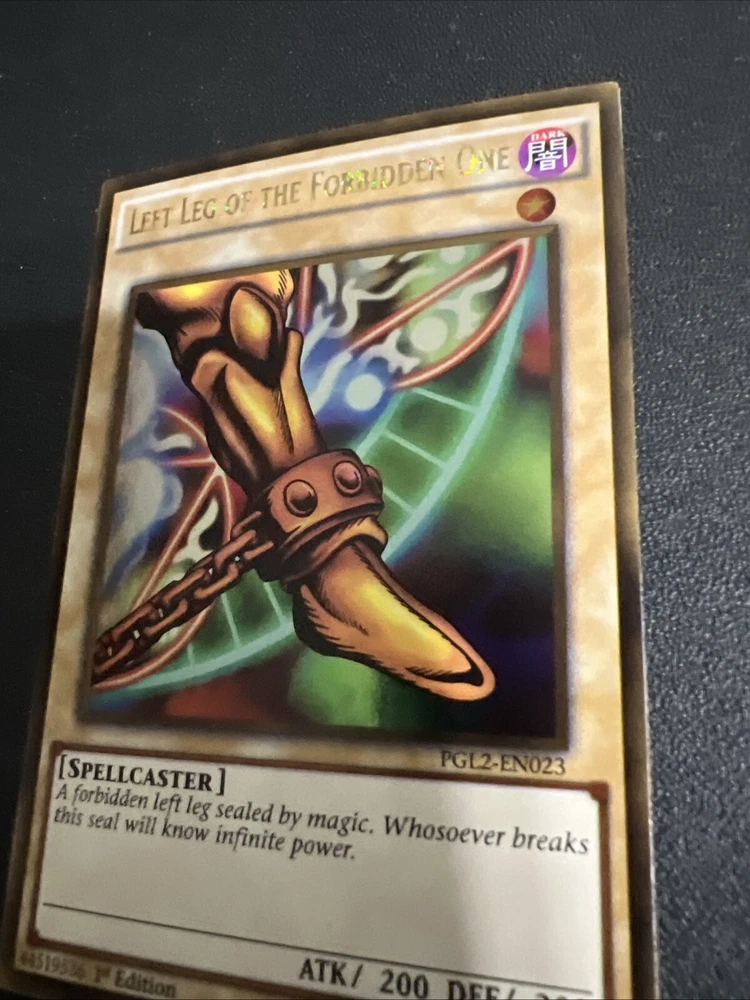 Immerse yourself in the world of Yu-Gi-Oh! TCG with the Ultra Rare "Left Leg of the Forbidden One" card, a must-have for collectors and duelists alike. This 1st Edition piece, identified as PGL2-EN023, is a crucial part of the iconic Exodia deck, revered for its power and rarity. Enhance your gameplay and strategy with this sought-after card from the Yu-Gi-Oh! trading card game. Whether you're looking to complete your collection or fortify your deck, the "Left Leg of the Forbidden One" stands out as a legendary addition. Best offer wanted!! The listing price is just a number. Your offer is most important so please do not hesitate to give me your best offer. Thank you for your interest. God bless!