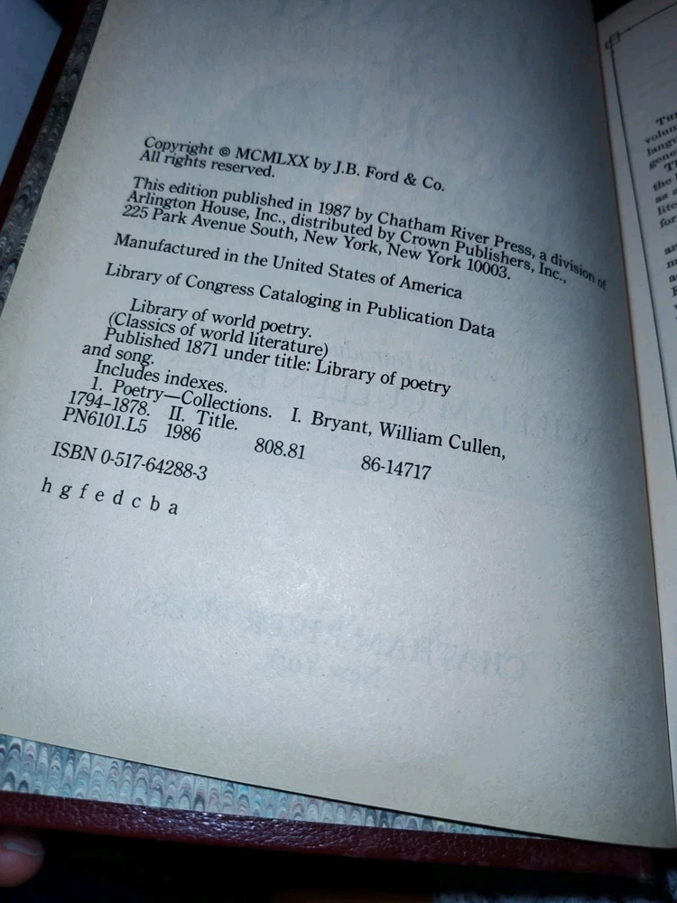Library of World Poetry Book. Chatham River Press. 750 Pgs. Leather. 1987.